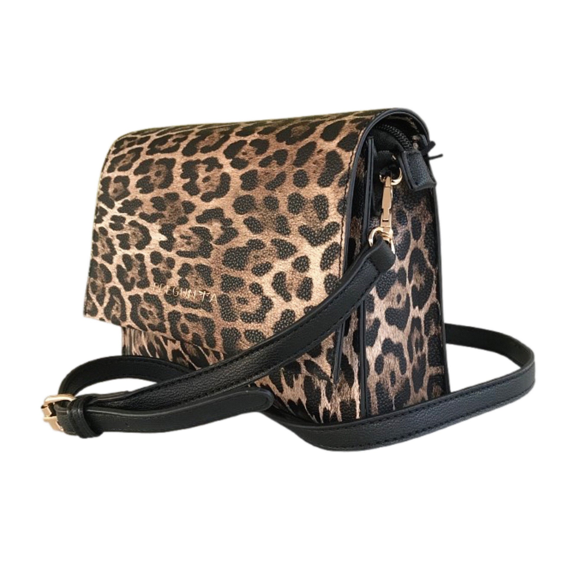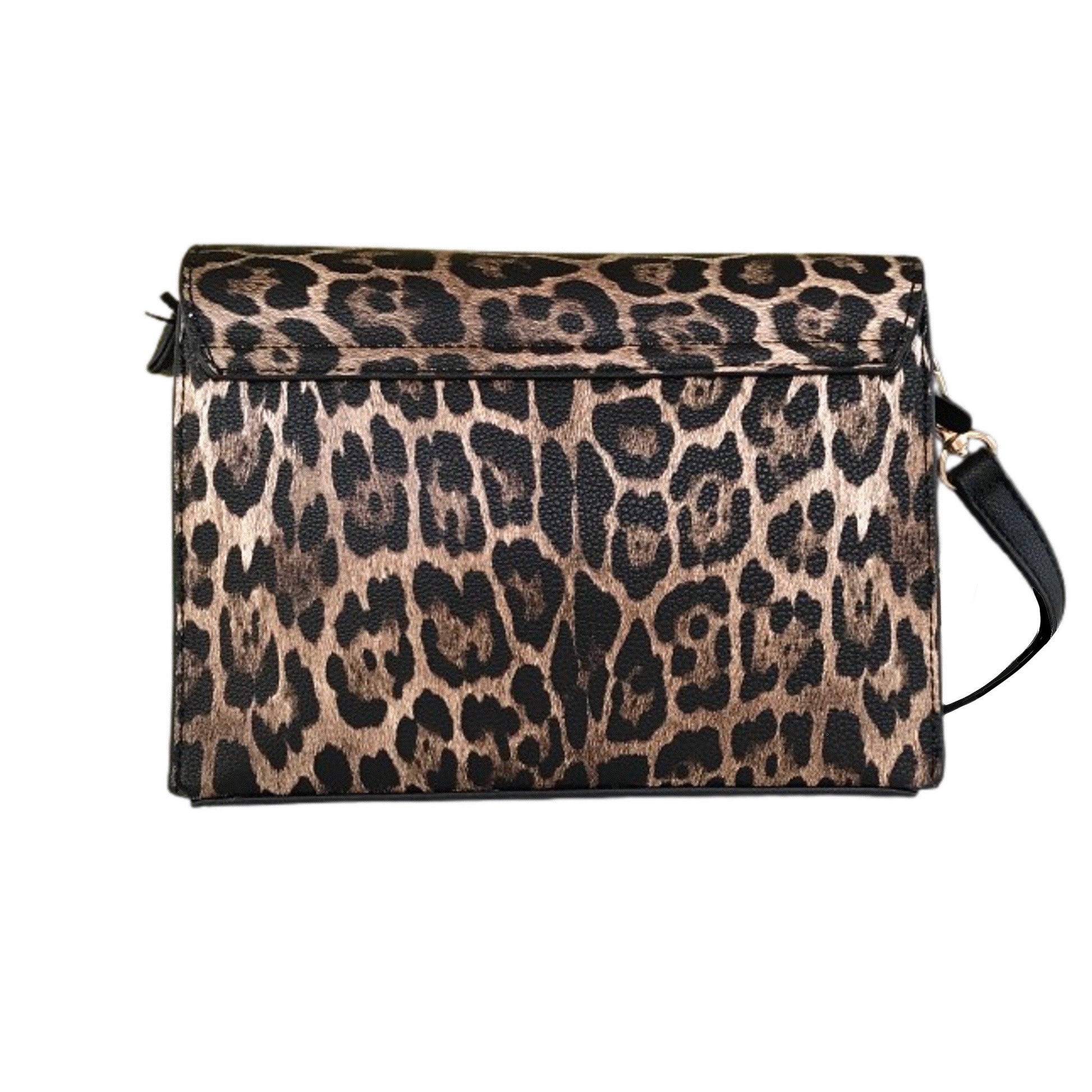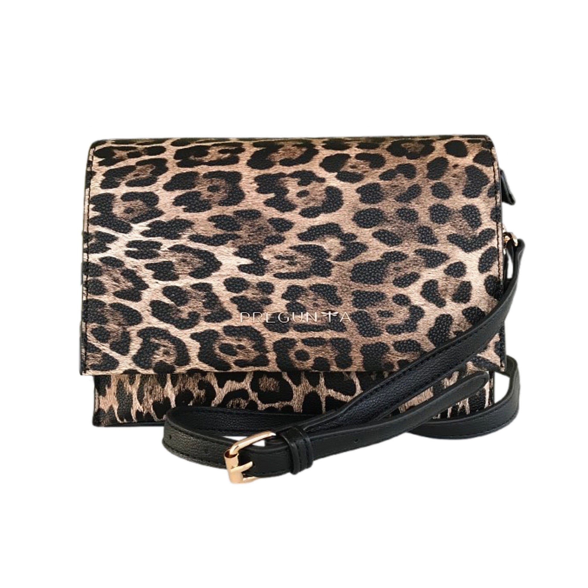 La Borsetta Pregunta animalier marrone e nero è un accessorio versatile, realizzato in resistente ecopelle. La stampa animalier su tonalità marrone e Nero rende unico il design, mentre la tracolla estraibile in ecopelle con moschettoni oro, aggiunge praticità e stile. Rimuovendo la tracolla, diventa una borsetta a mano perfetta per ogni occasione. La chiusura è con zip, e all’interno è capiente, foderata beige, senza scomparti. Presenta una tasca interna con cerniera.