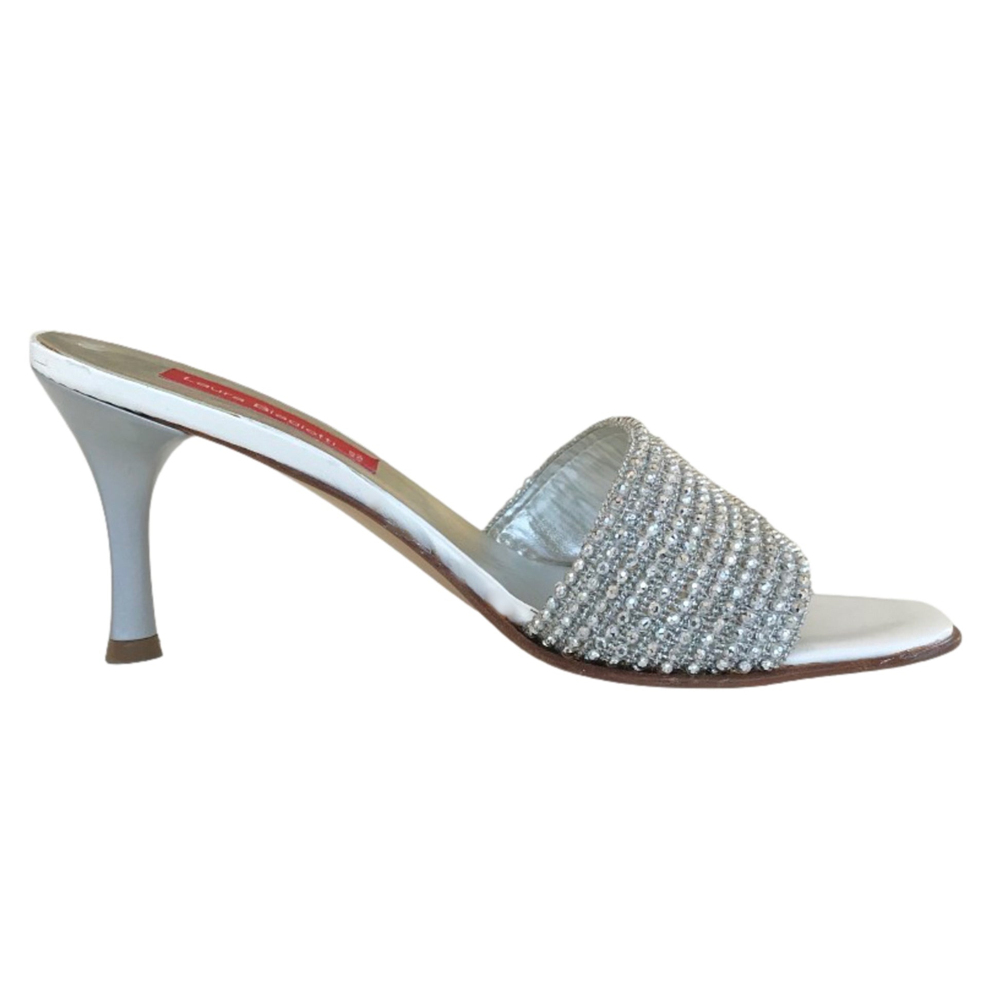 Ciabatte con tacco Laura Biagiotti Vera Pelle Fascia di perline - Argento