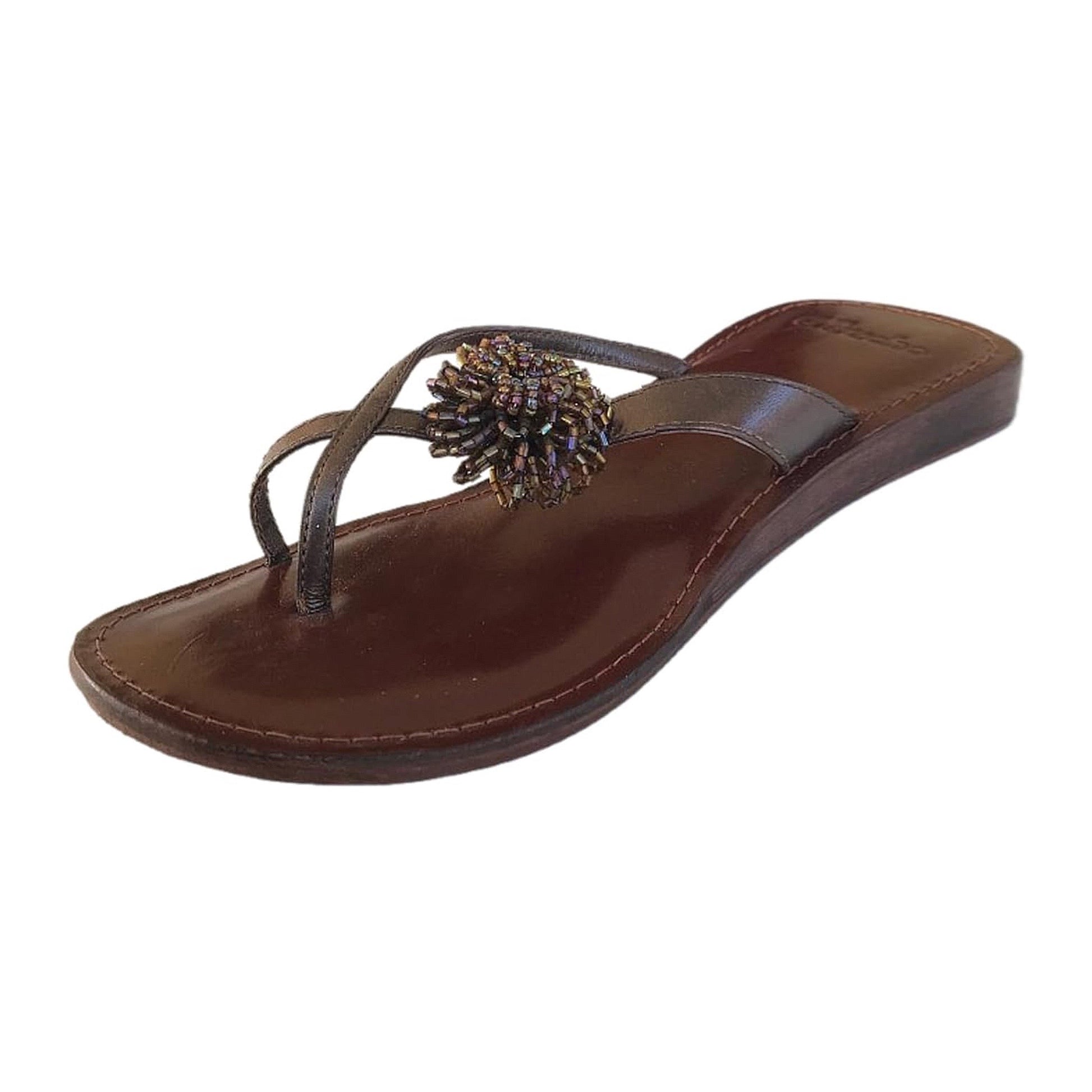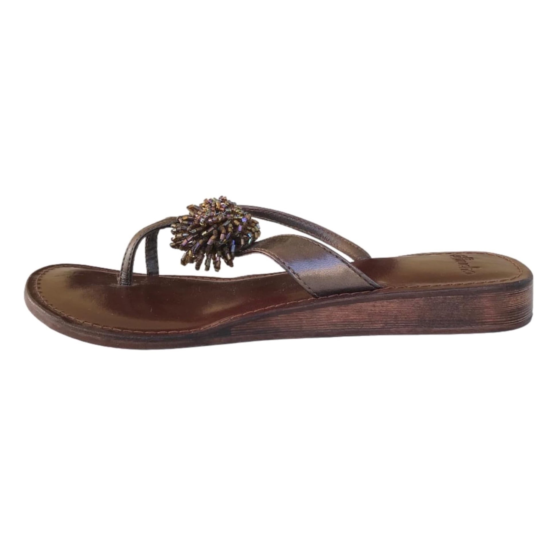 Ciabatte infradito El Gaucho Brown con fiore di perline Vera Pelle Fondo Vero Cuoio