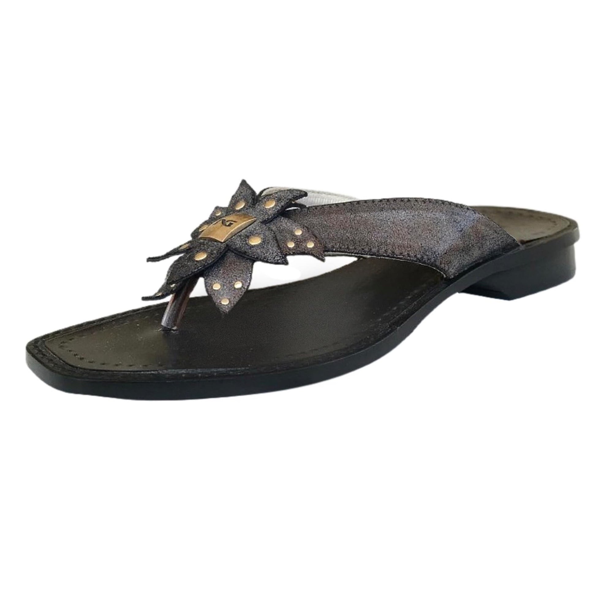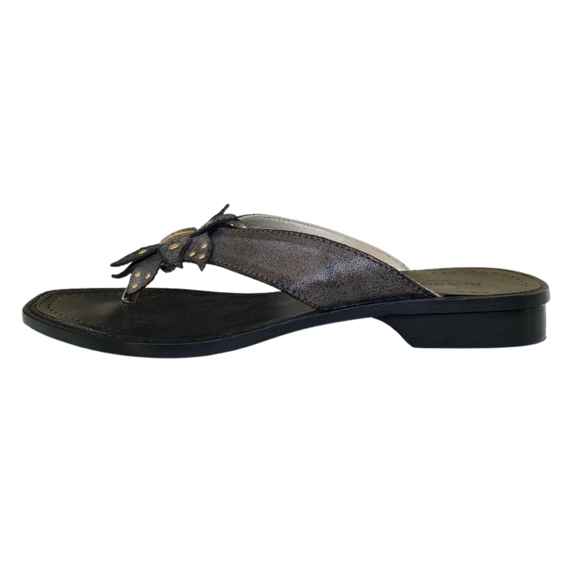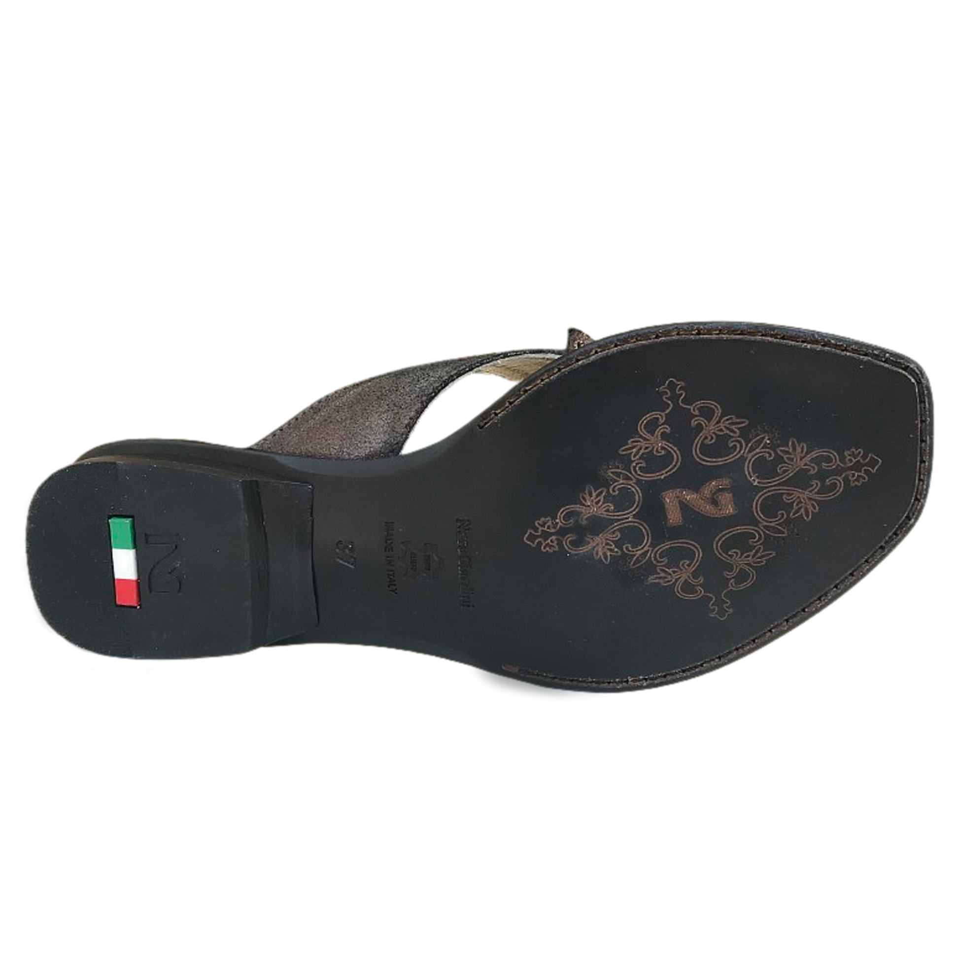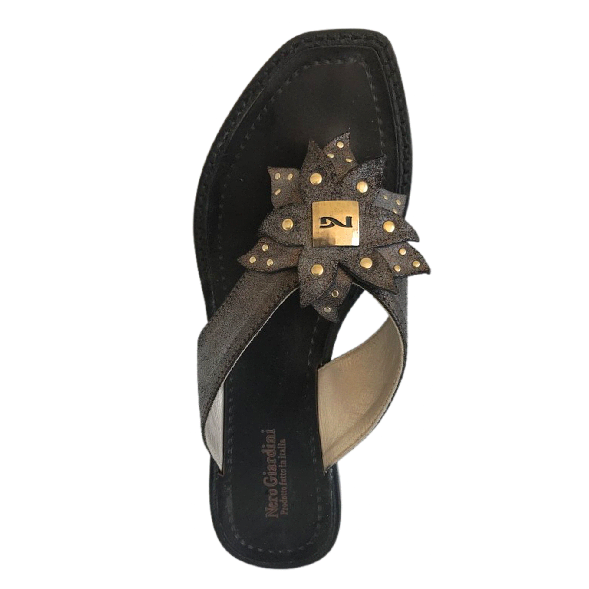 Ciabatte infradito NeroGiardini Vera Pelle Fiore Marrone Ebano Fondo Cuoio