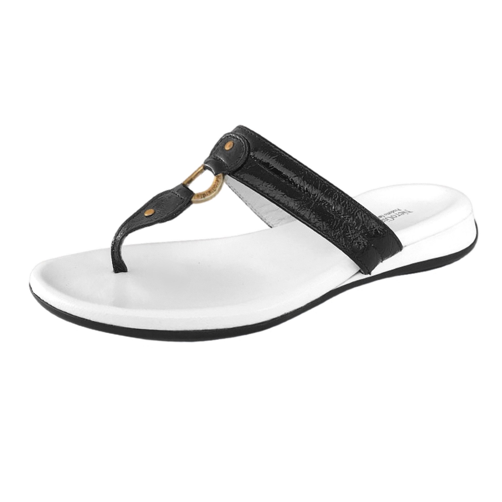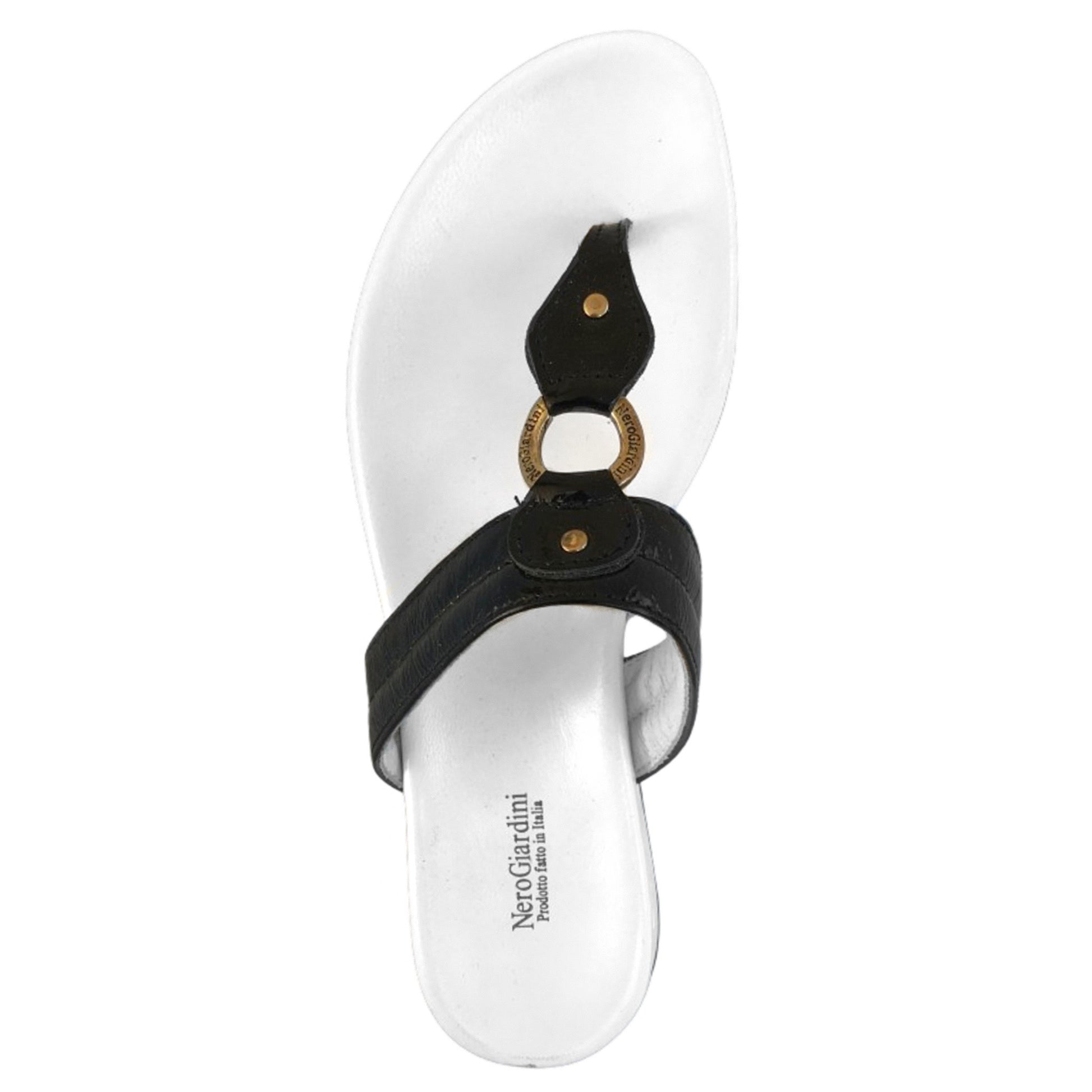 Ciabatte Infradito NeroGiardini Vera Pelle in vernice Nero fondo Bianco
