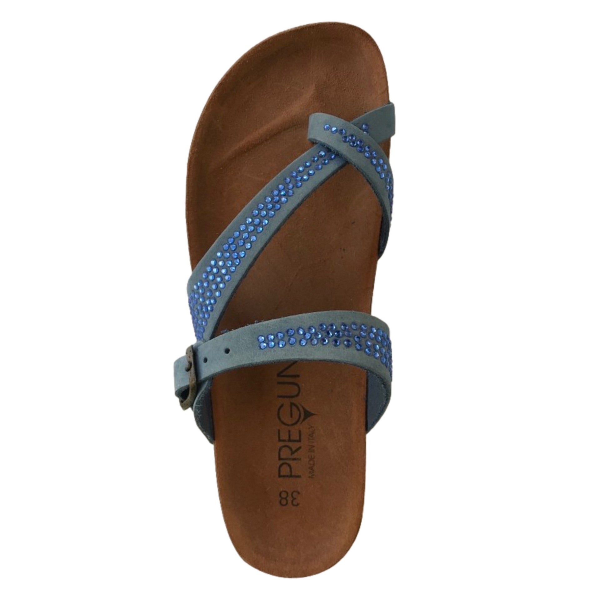 Ciabatte Infradito Pregunta Vera Pelle Blu con strass