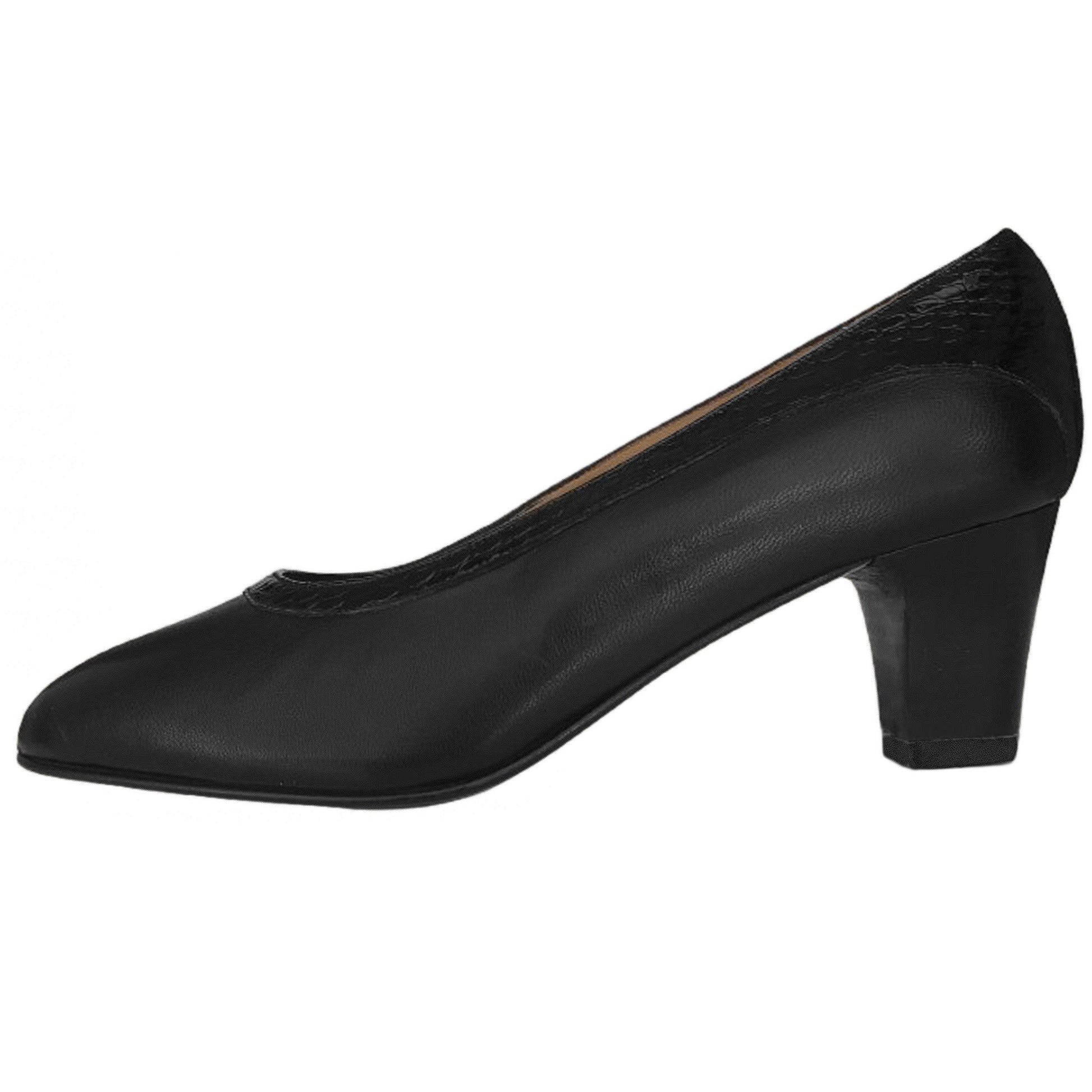 Queste Dècolletè Donna Confort 1933 in vera pelle nera con riporti in vernice e stampa rettile sono perfette per un look elegante e confortevole. Grazie al tacco di 5,5 cm, offrono un sostegno stabile e una camminata sicura. Ideali per una donna che vuole conferire un tocco di classe al proprio outfit.