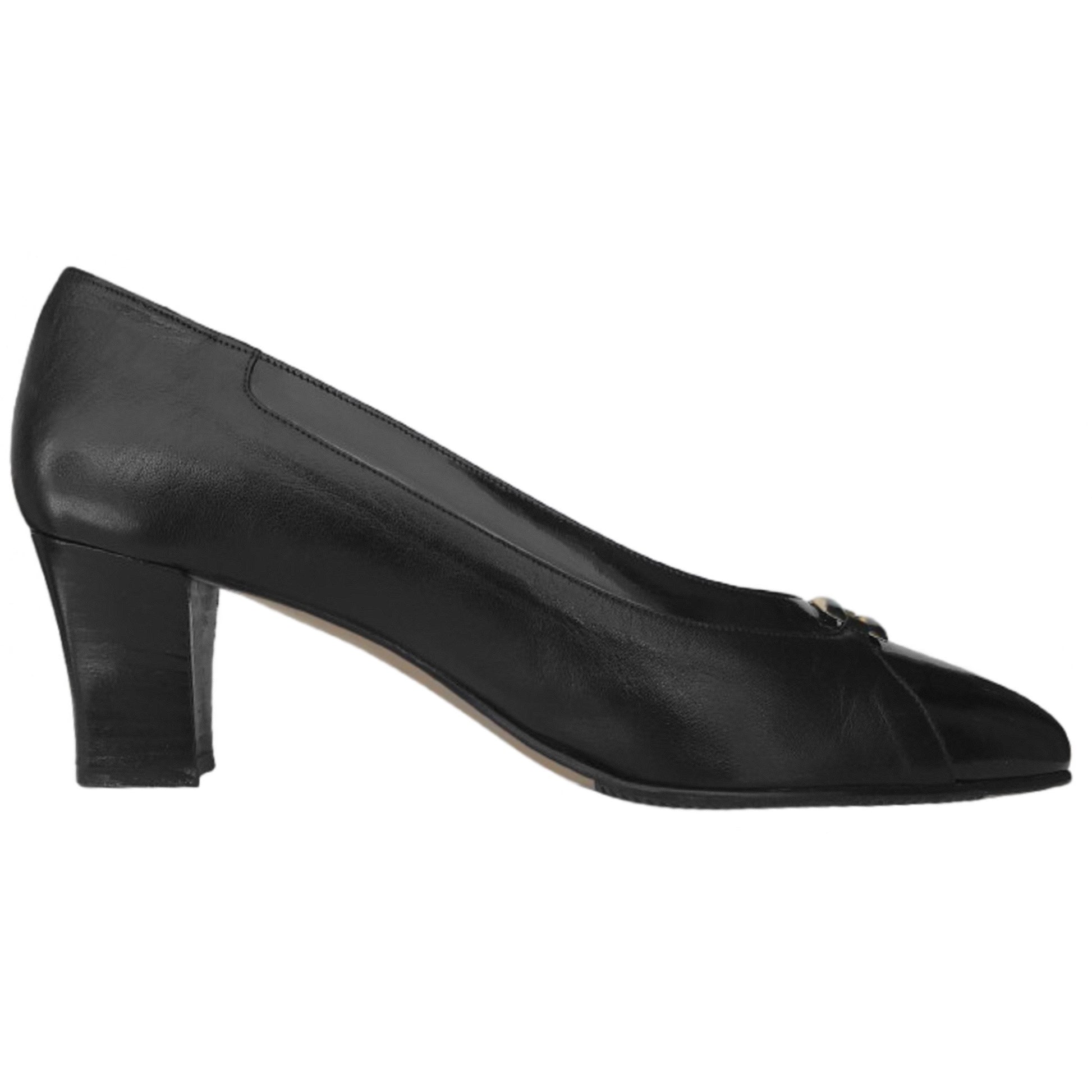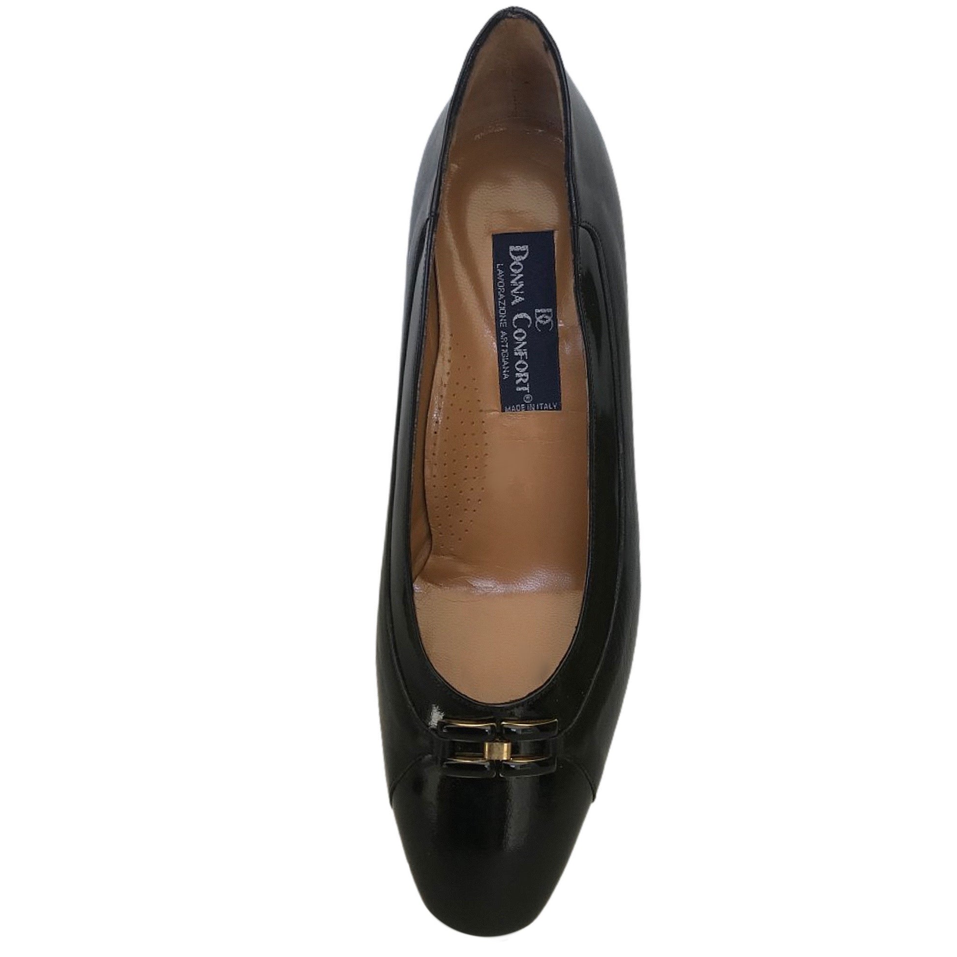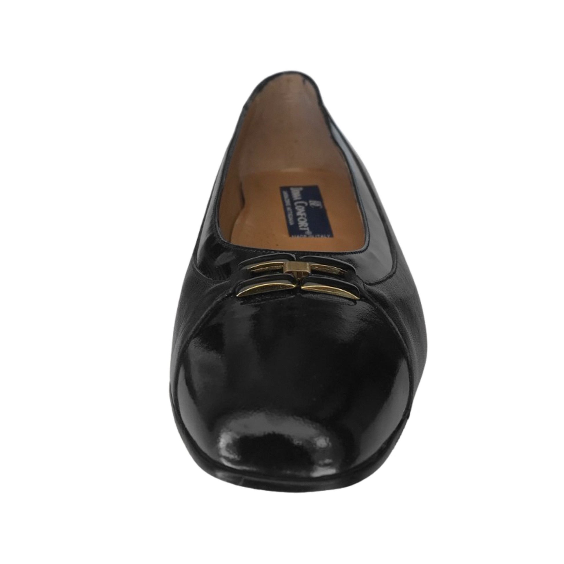 Dècolletè Donna Confort 2152, Vera pelle con riporti in vernice, Nero con accessorio oro
