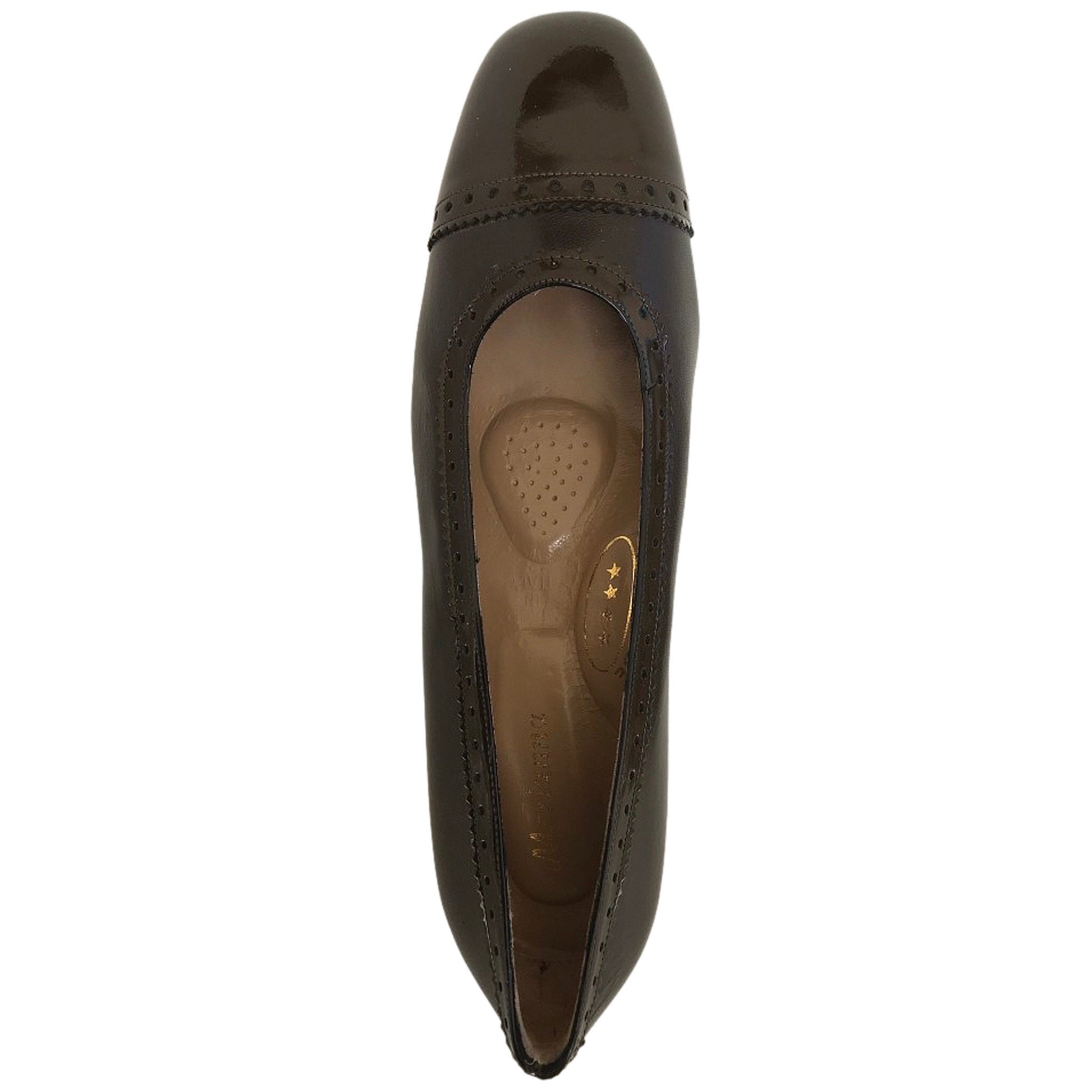 Dècolletè donna MERIANNA Confort con tacco 40 e fondo in mezza gomma, stile inglese, per un look elegante e confortevole. Realizzate in vera pelle di colore testa di moro, queste scarpe offrono una calzata comoda e resistente. Disponibili nella taglia 38 EU.