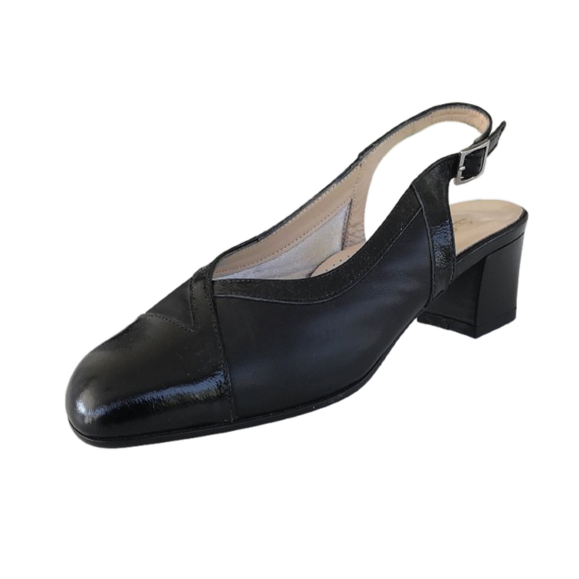 Décolleté Slingback Cinzia Valle 3502 in Vera Pelle Naplak e Nappa Nero