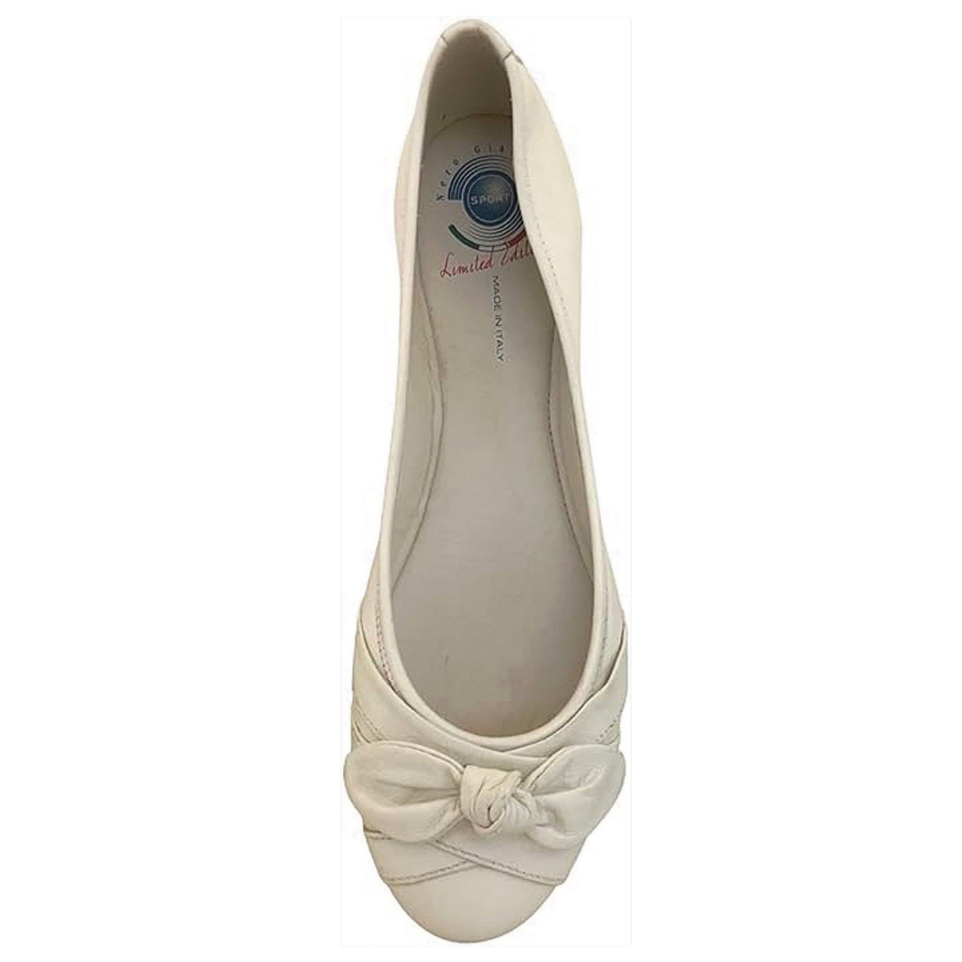 NeroGiardini Ballerine P000356 in Vera Pelle, Bianco Latte, Fiocco Decorativo