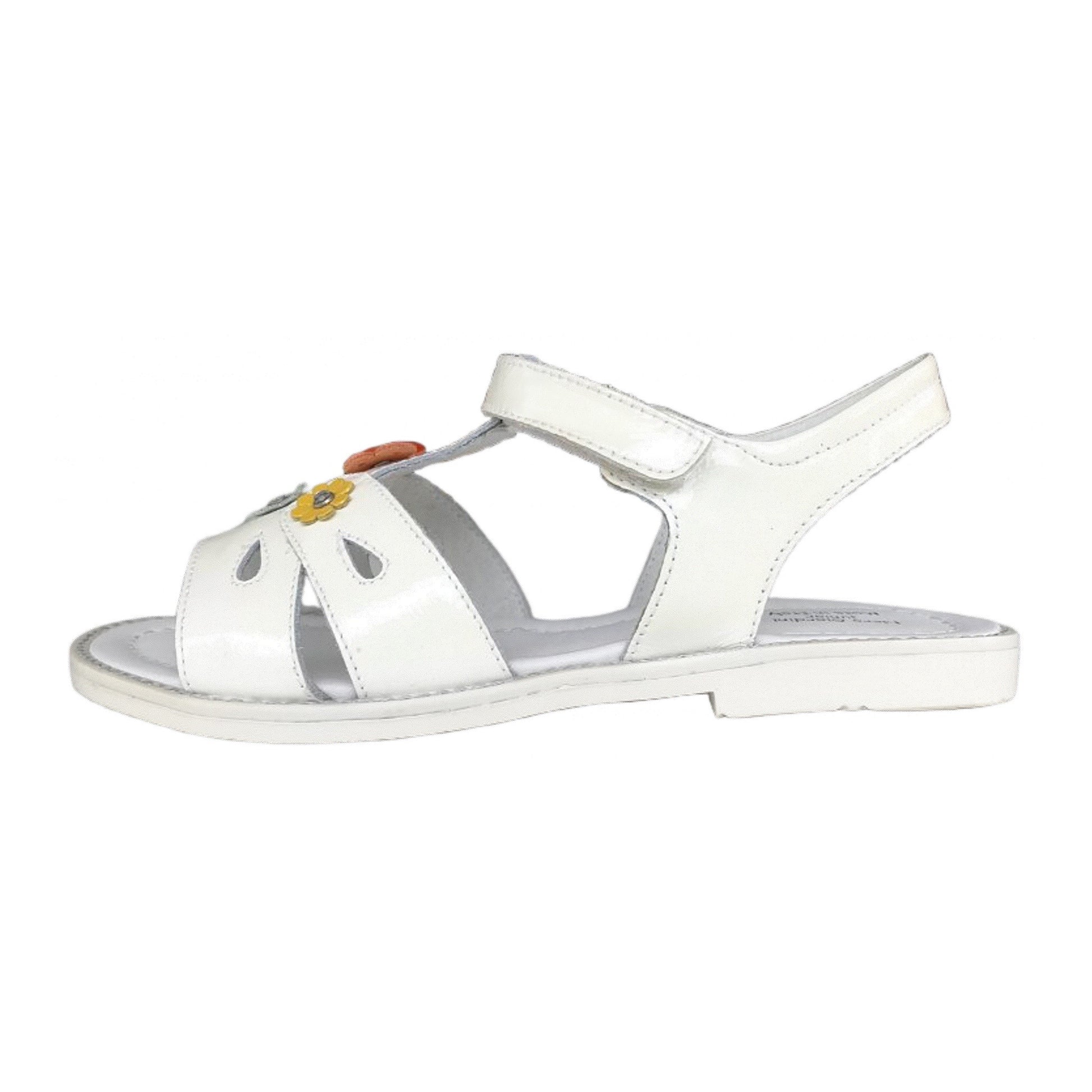 Questi deliziosi sandali per bambina sono realizzati in vera pelle verniciata di colore bianco, perfetti per le giornate estive. Il design è impreziosito da graziosi dettagli floreali e una farfalla decorativa che aggiungono un tocco di dolcezza e femminilità. La pratica chiusura a strappo garantisce una calzata facile e sicura, ideale per le bambine che stanno imparando ad essere autonome. La suola è robusta e confortevole, progettata per offrire il giusto supporto durante il cammino. La misura 34 EU è adatta per bambine in età scolare. L'interno è rifinito con materiali morbidi per garantire il massimo comfort durante l'uso quotidiano. Il colore bianco li rende versatili e facili da abbinare con qualsiasi outfit, dalle occasioni più casual a quelle più eleganti. La qualità della pelle assicura una buona traspirazione del piede e una lunga durata nel tempo.