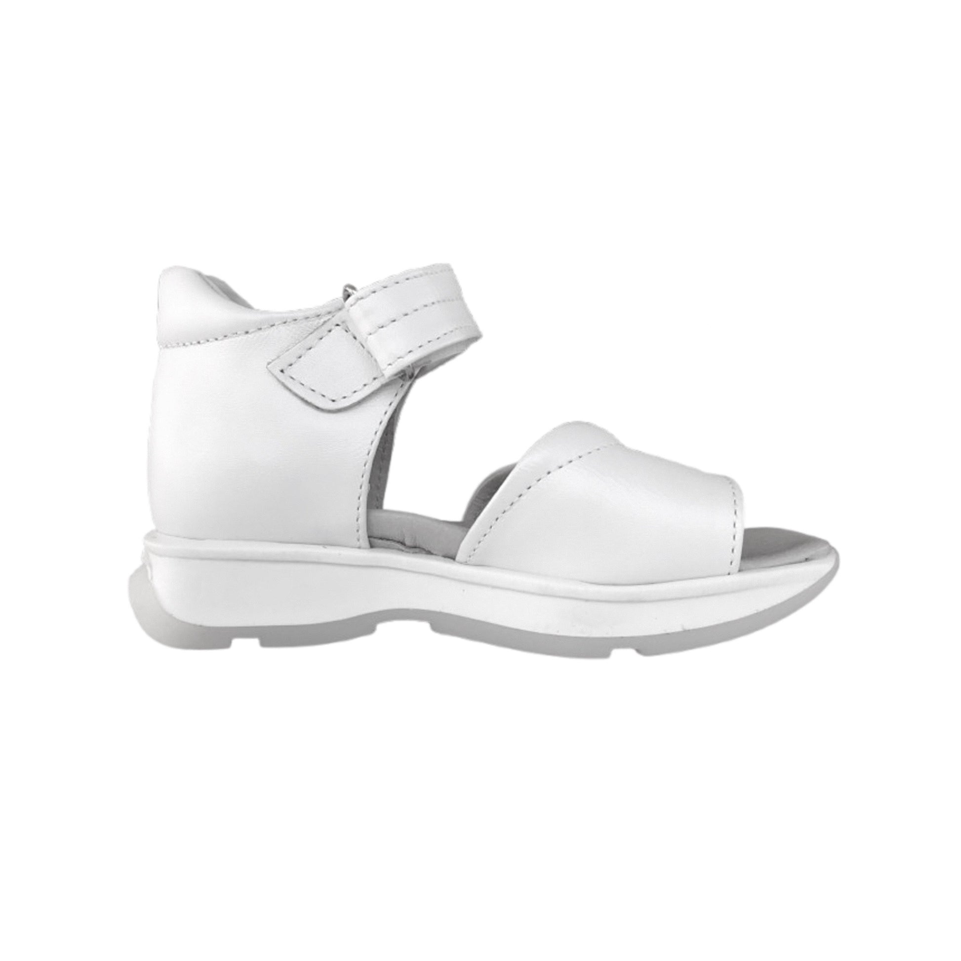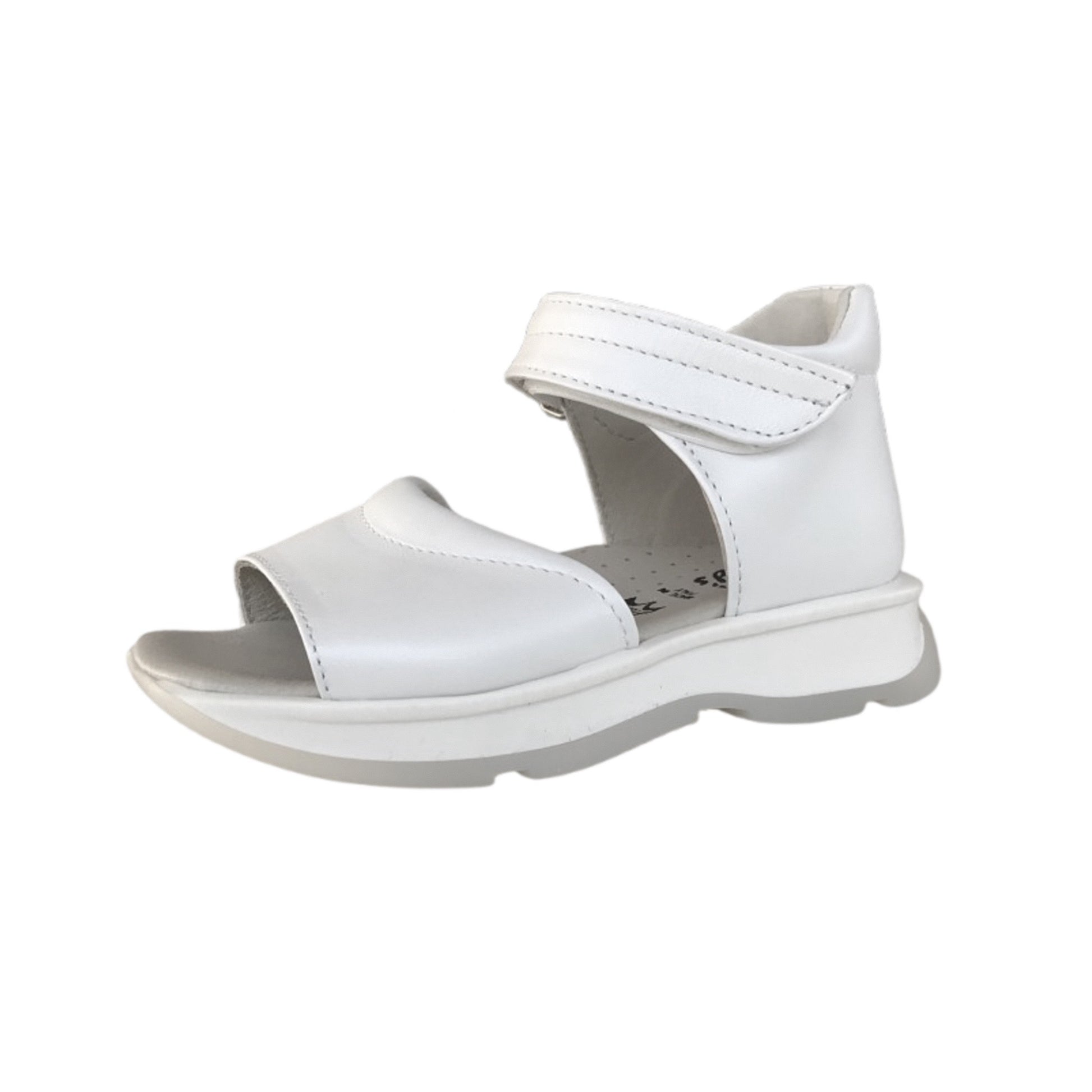 Sandali da Bambina Safari Kid’s in Vera Pelle, Bianco Perlato, Suola in Gomma Antiscivolo, Chiusura a Strappo, 24 EU