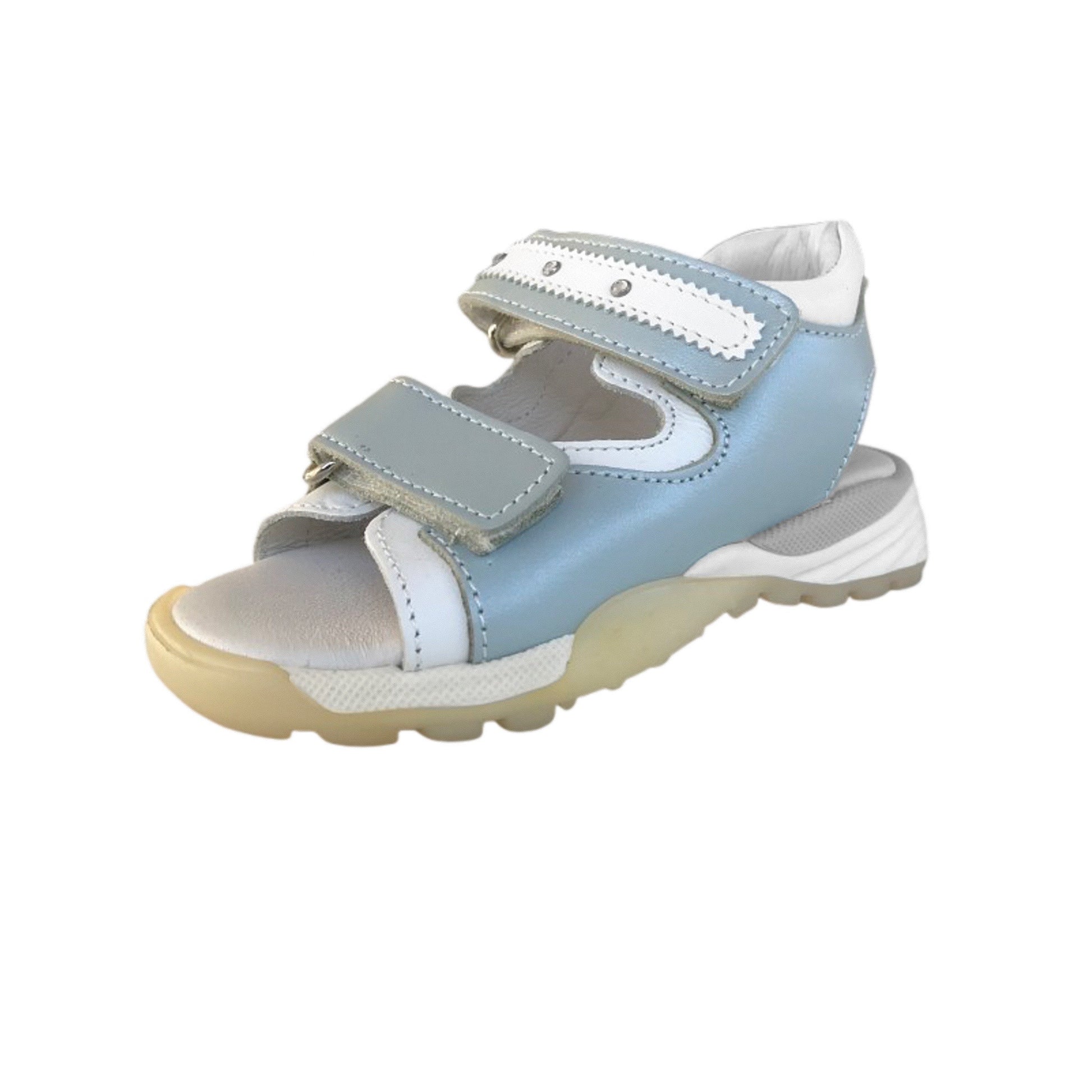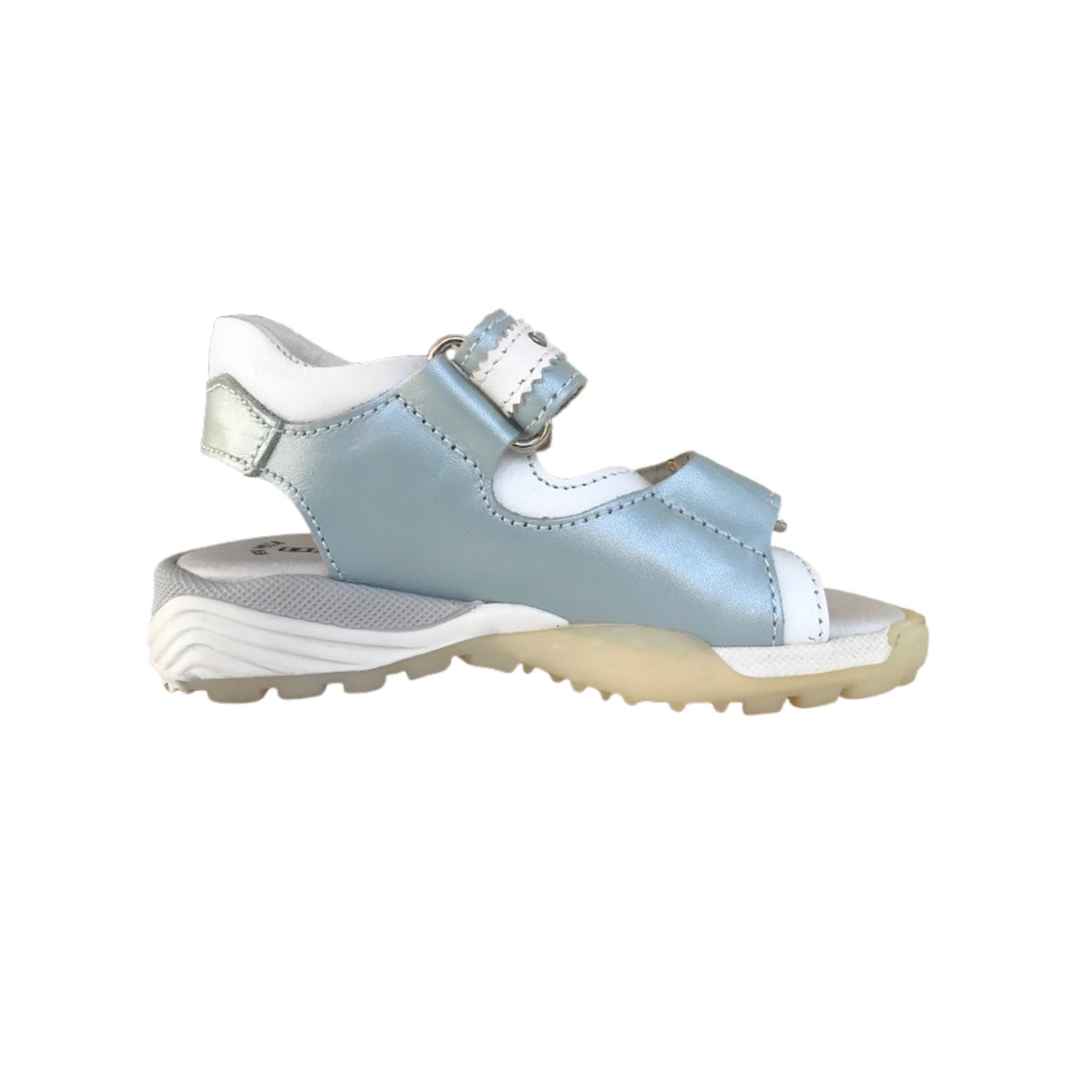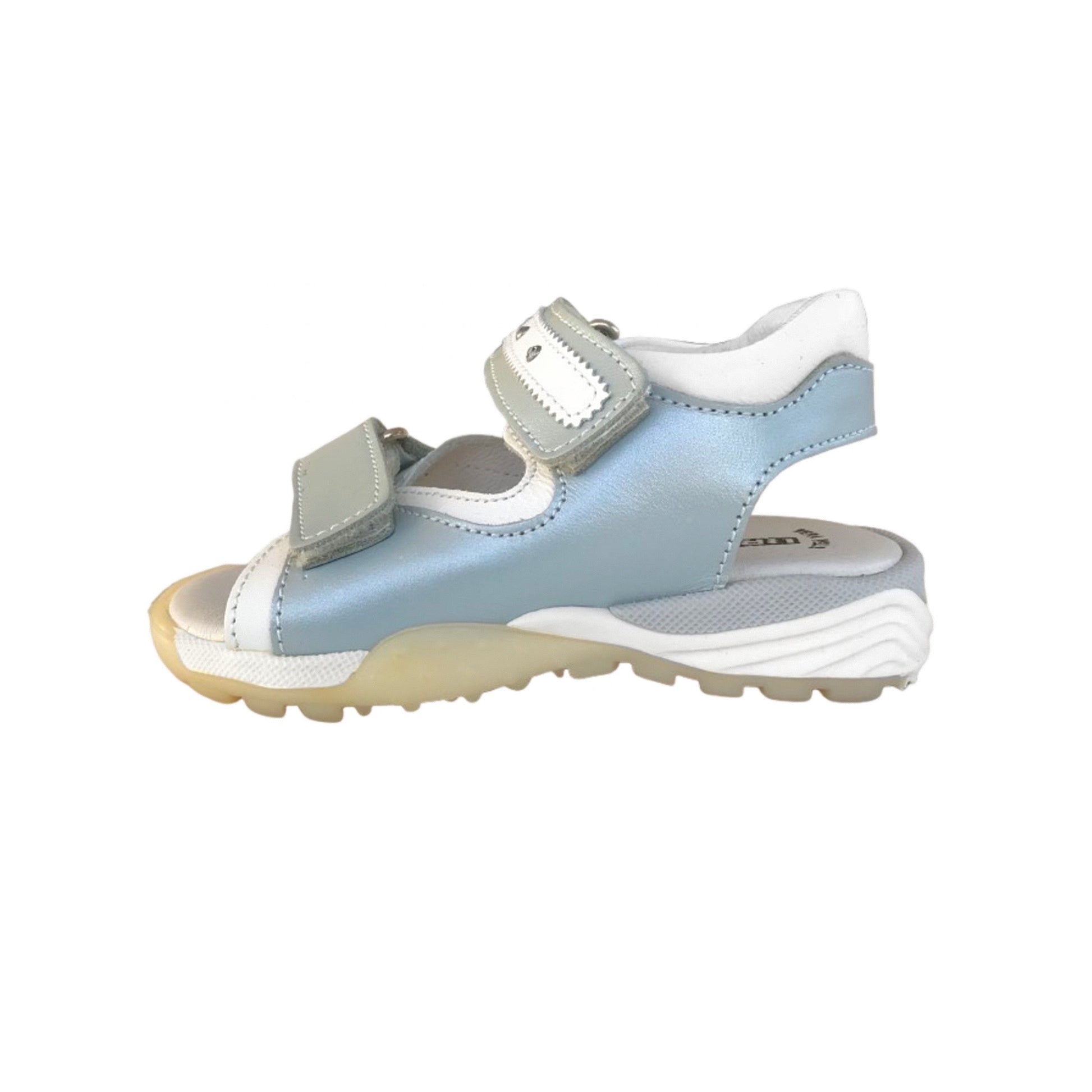 Questi deliziosi sandali da bambina sono realizzati in vera pelle con una raffinata finitura celeste perlata che cattura la luce in modo incantevole. Il design presenta un pratico sistema di doppio strappo, arricchito da eleganti strass che aggiungono un tocco di brillantezza. La struttura li rende perfetti per i piccoli piedi in crescita. La suola robusta e flessibile garantisce stabilità e comfort durante il cammino, mentre l'imbottitura interna assicura una calzata confortevole. Il mix di bianco e celeste crea un look versatile, adatto sia per le occasioni speciali che per l'uso quotidiano. La costruzione in vera pelle permette ai piedi di respirare naturalmente, ideale per le giornate calde. La chiusura con doppio strappo facilita la calzata e permette ai genitori di regolare perfettamente l'aderenza del sandalo al piedino.