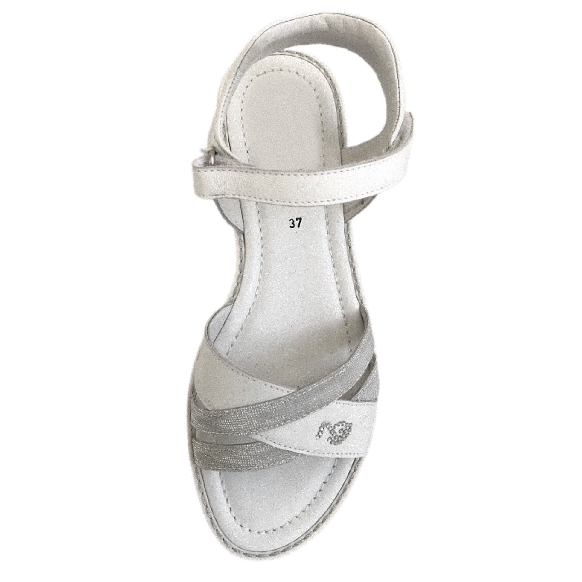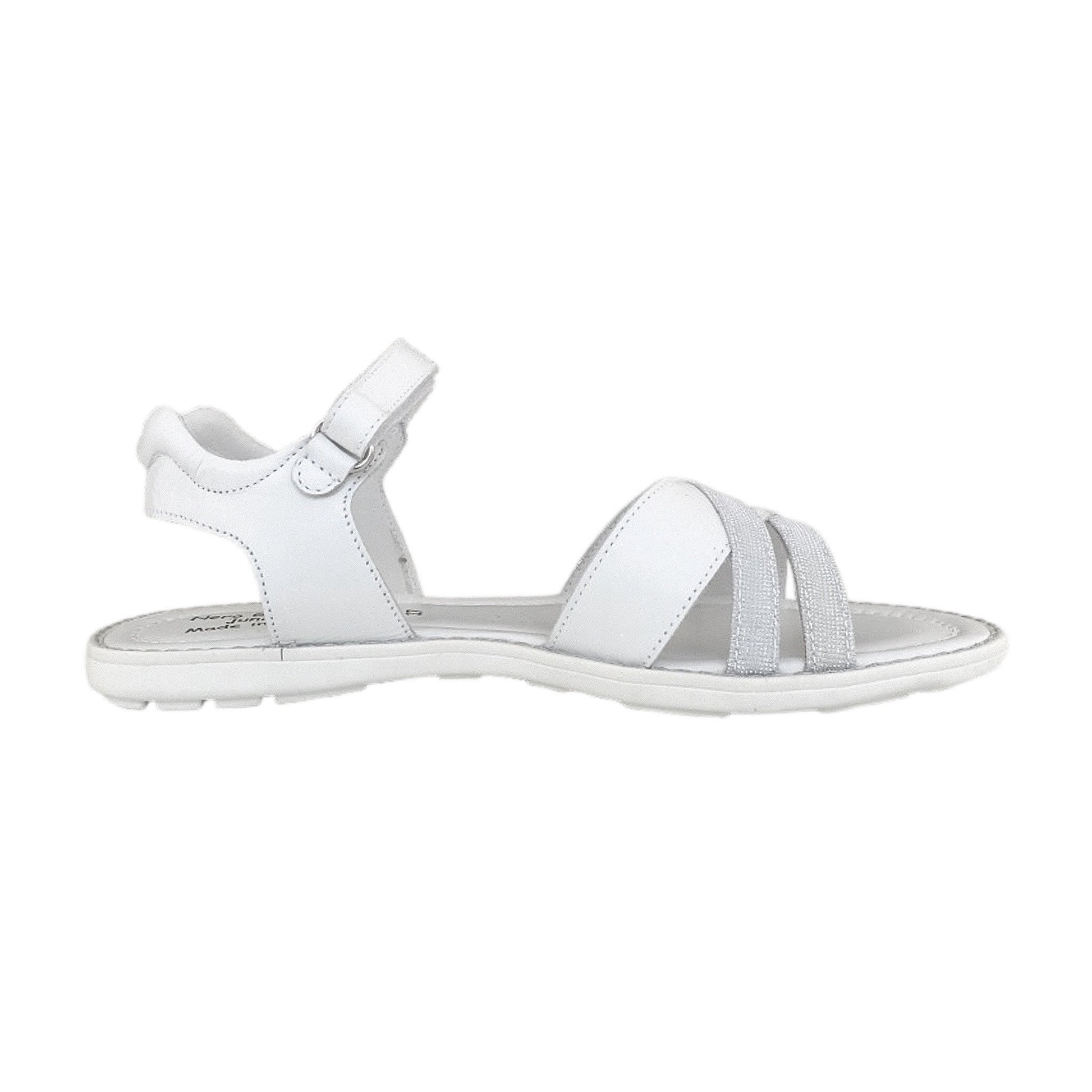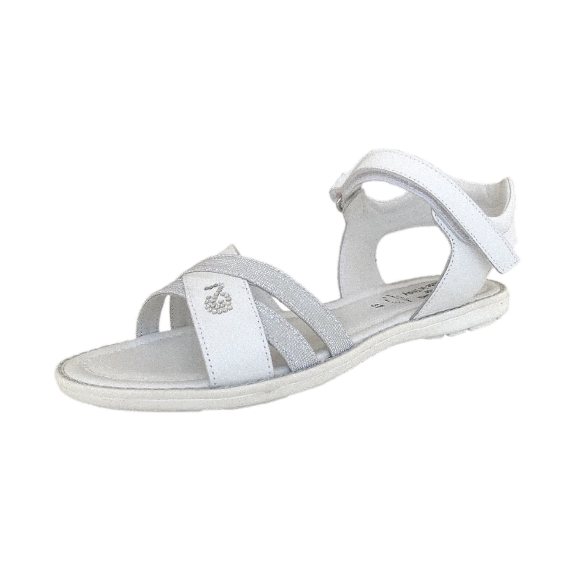 Sandali da Ragazza e Donna NeroGiardini in Vera Pelle, Bianco e Argento, con Chiusura a Strappo