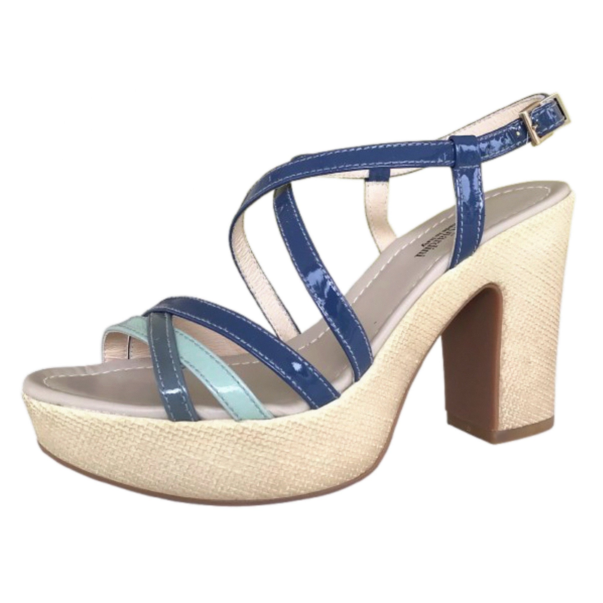 Sandali NeroGiardini P410750D Vernice Avion Naplak Cielo Tacco a blocco con plateau