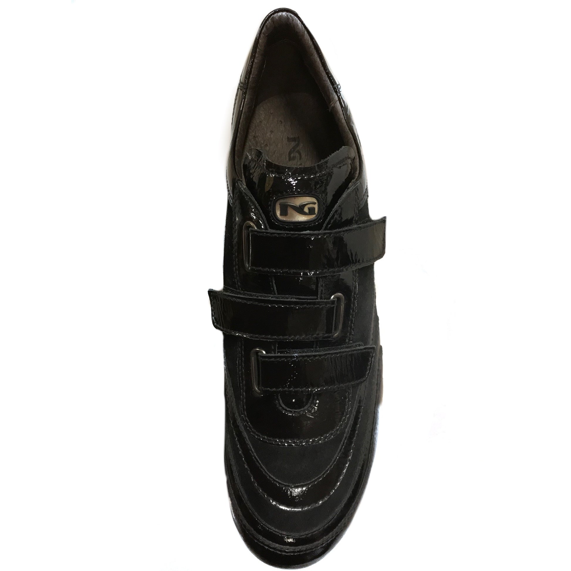 Sneakers scarpe con chiusura a strappo Uomo NeroGiardini A907919 in Vera Pelle scamosciata, Pelle in vernice - Colore Nero