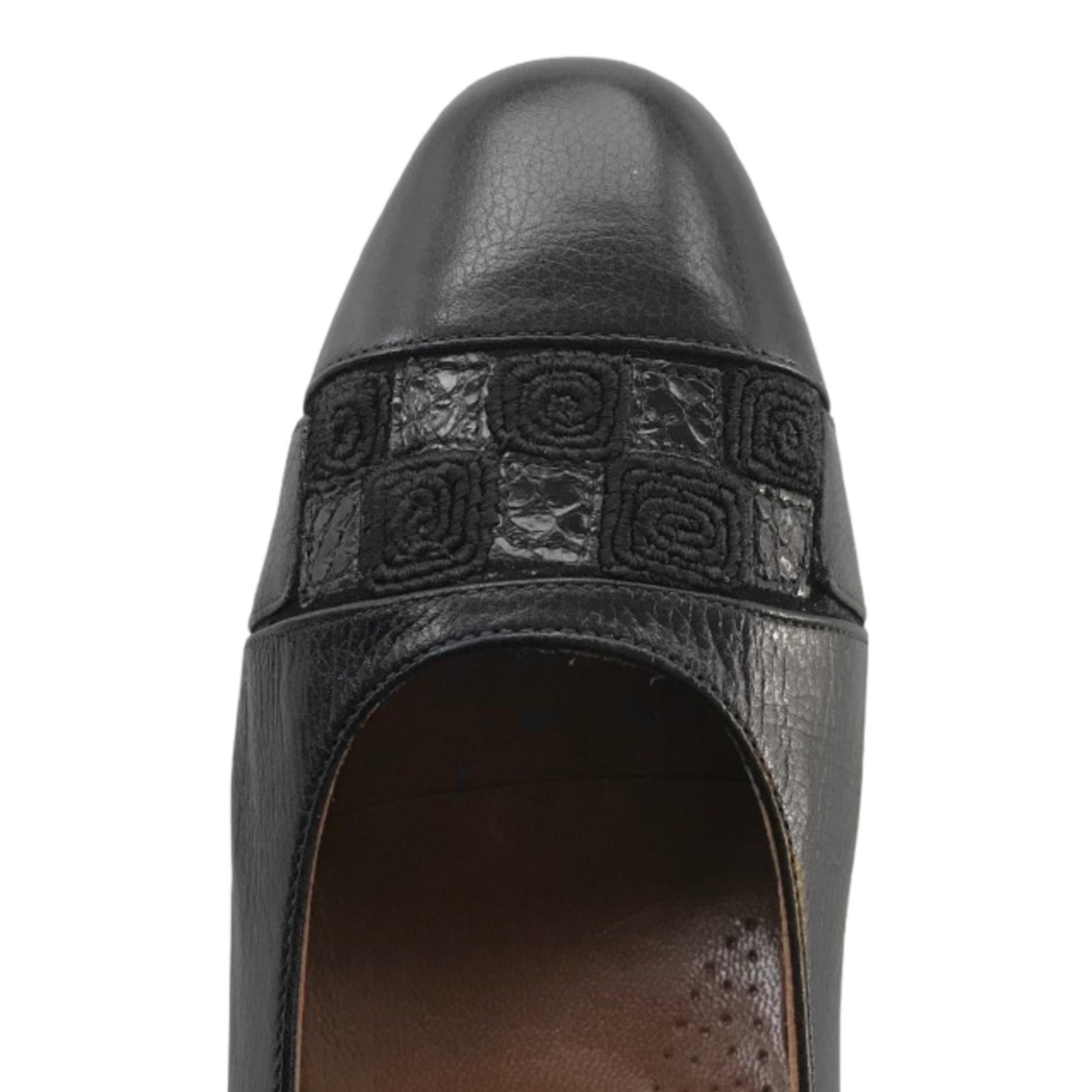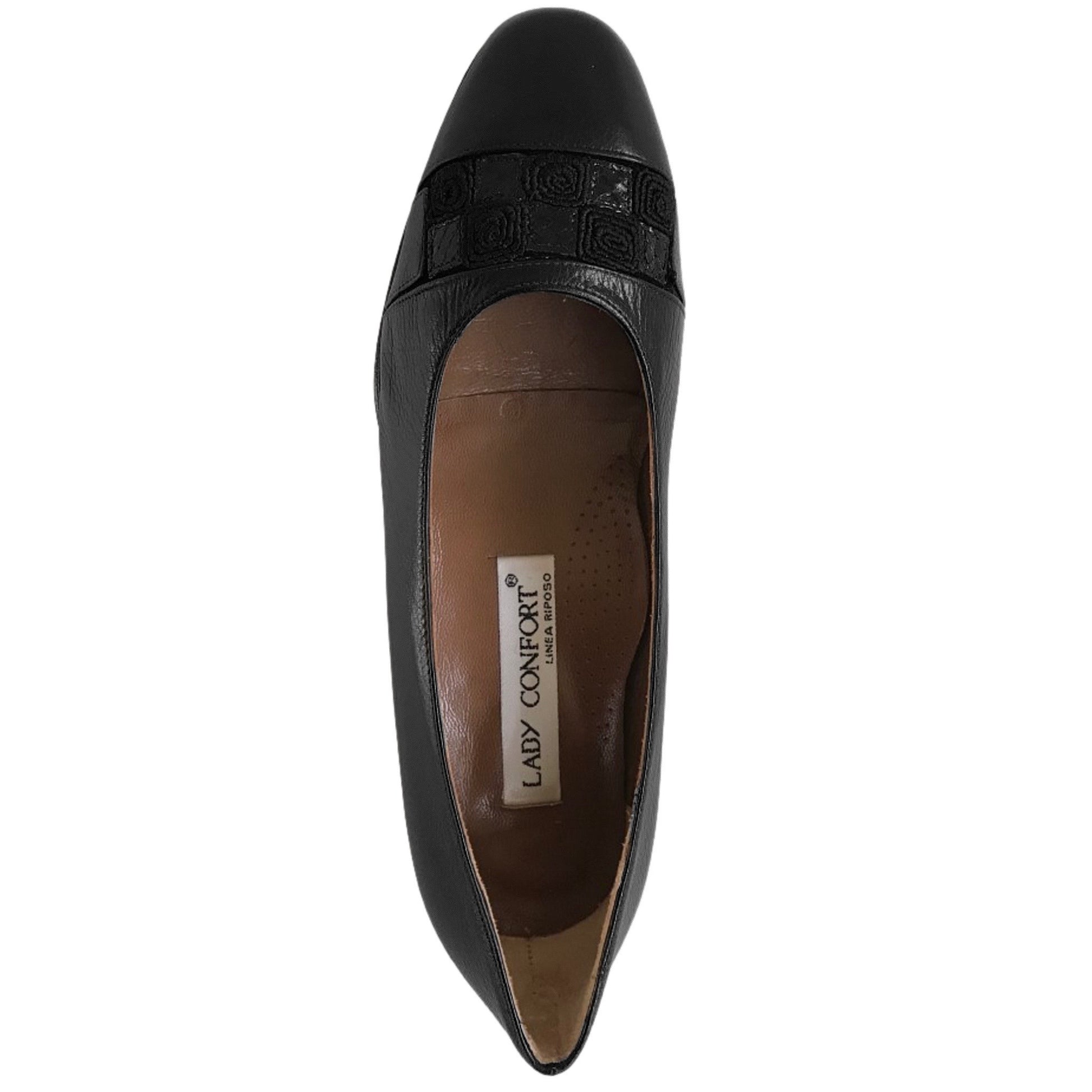 Dai un tocco di eleganza ai tuoi look con i Dècolletè Donna Confort 016 in vera pelle nera. L'elevato tacco di 4.5 cm offre comodità e stabilità, perfetto per lunghe giornate di lavoro o serate speciali. I ricami tridimensionali sul tomaio aggiungono un tocco di raffinatezza a questo classico modello.