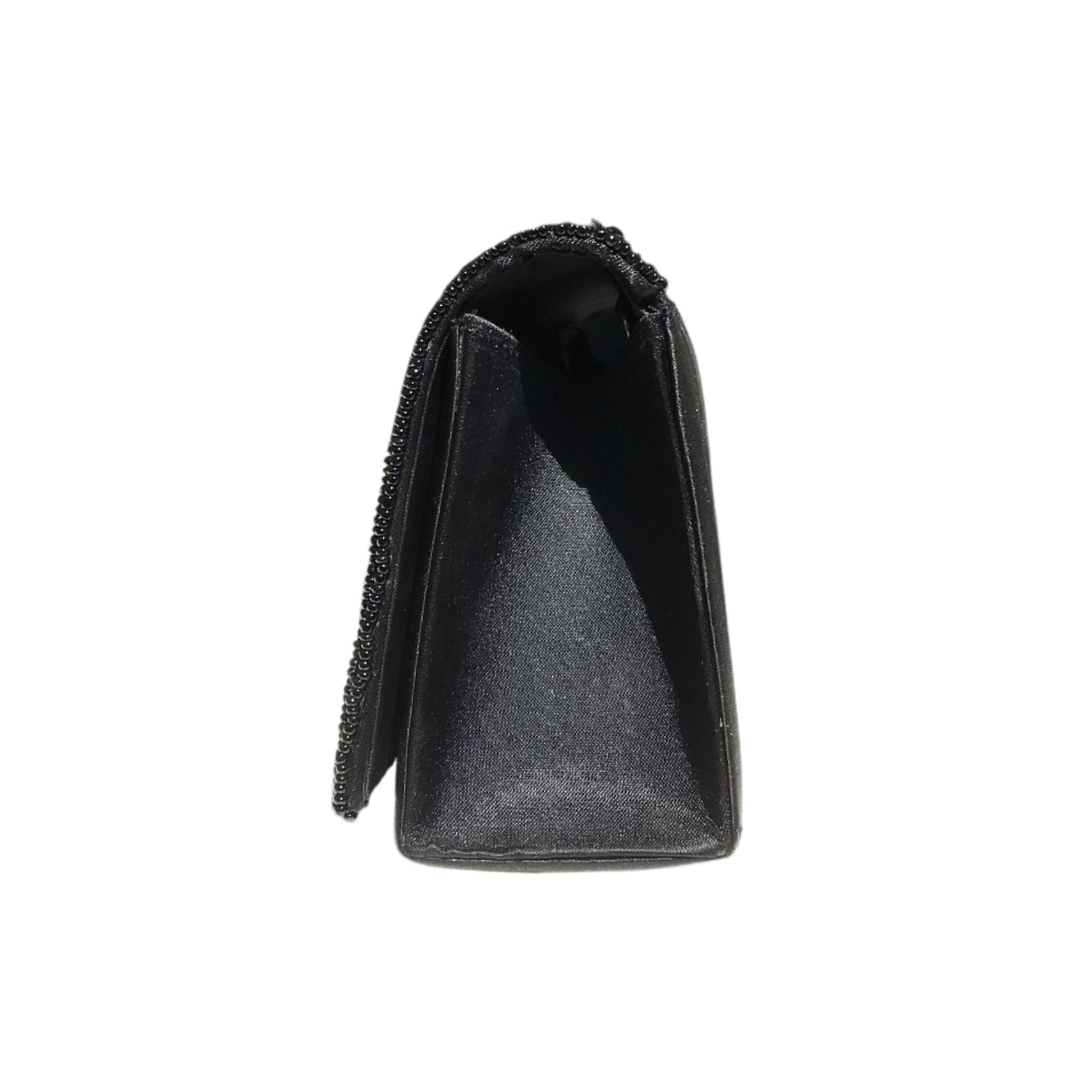 Aggiungi un tocco di eleganza al tuo look con la Pochette con perline ricamante e catenina oro. La pochette nera è decorata con perline ricamate nei colori nero, oro, Bordeaux e verde, e può essere indossata a mano o con la comoda catenina in oro. Perfetta per ogni occasione.