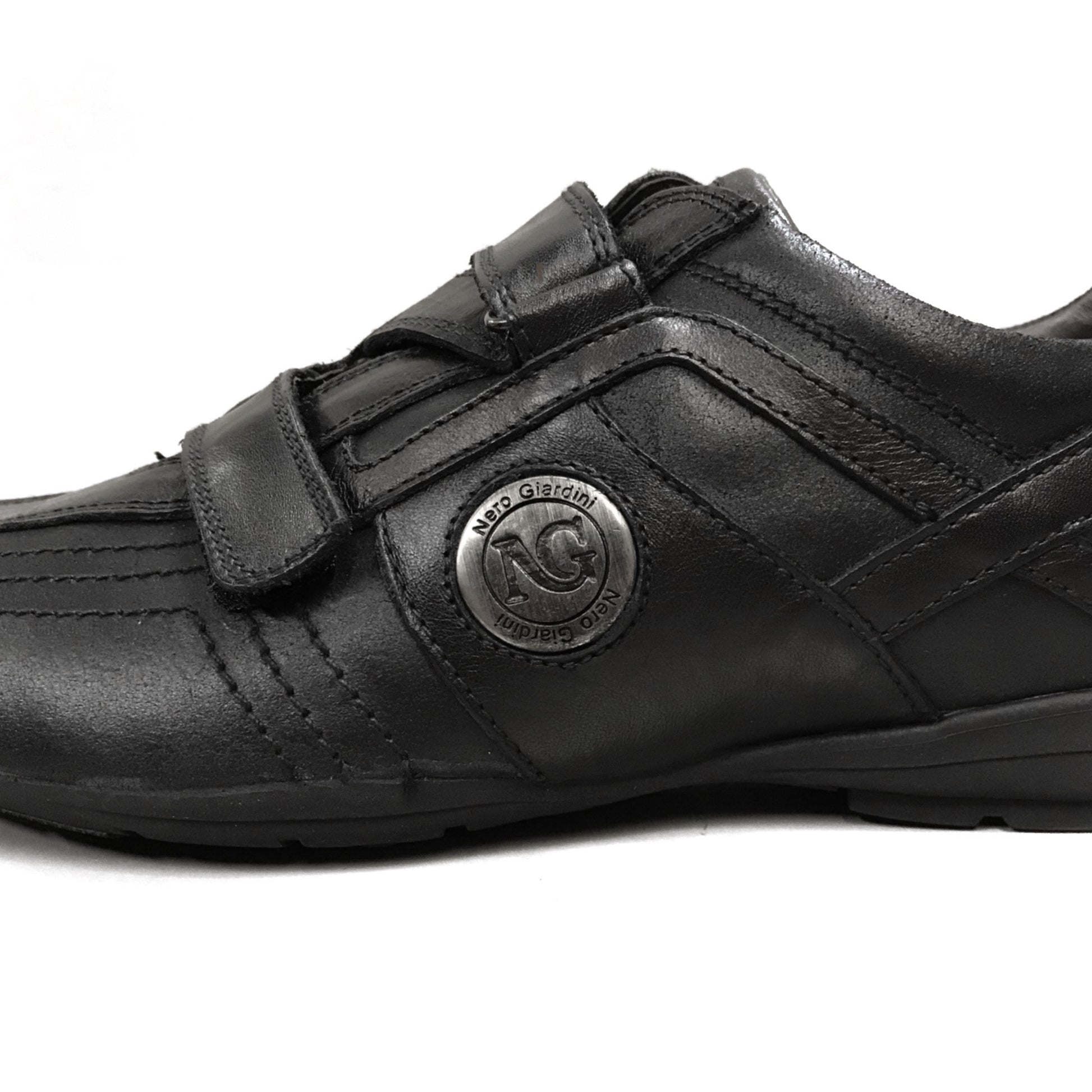 Sneakers Uomo NeroGiardini 07586 in Vera Pelle, con chiusura a strappo, Nero - Numero 45