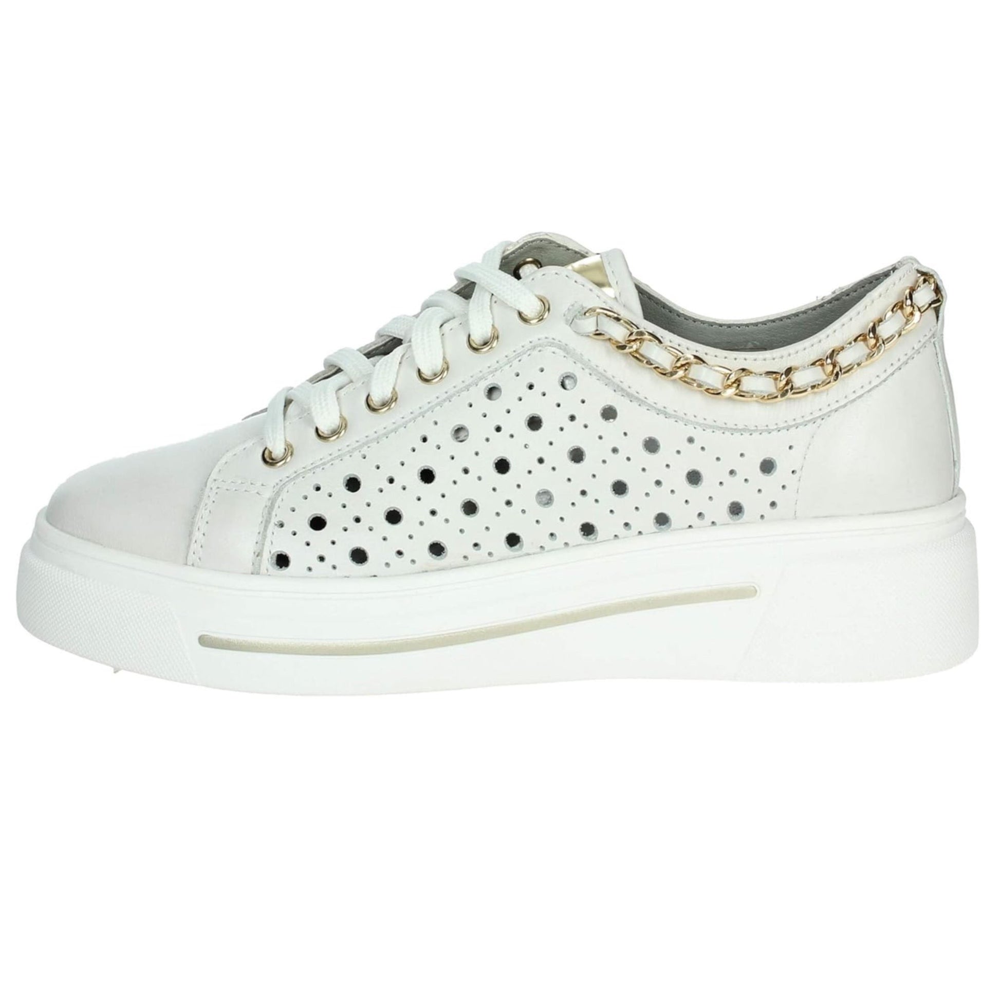 Sneakers Donna Bianche Cinzia Soft in Pelle Traforata con Plantare Estraibile, catena oro, platform IV1021472 - 003