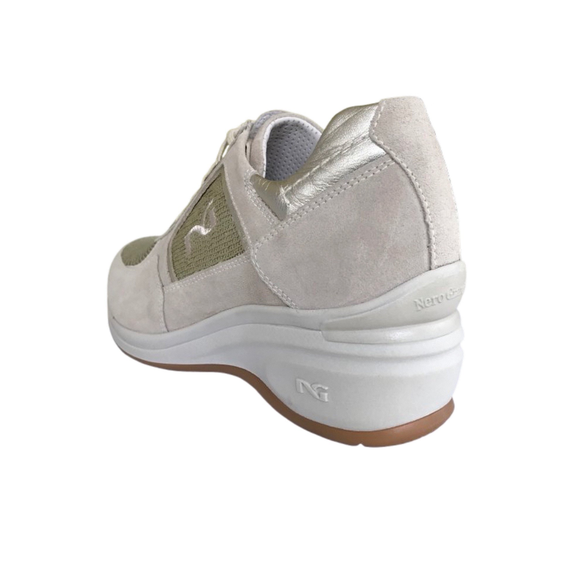 Sneakers Donna NeroGiardini P207010D Vera Pelle Beige Avorio con paillettes platino e zeppa - 39 (EU)