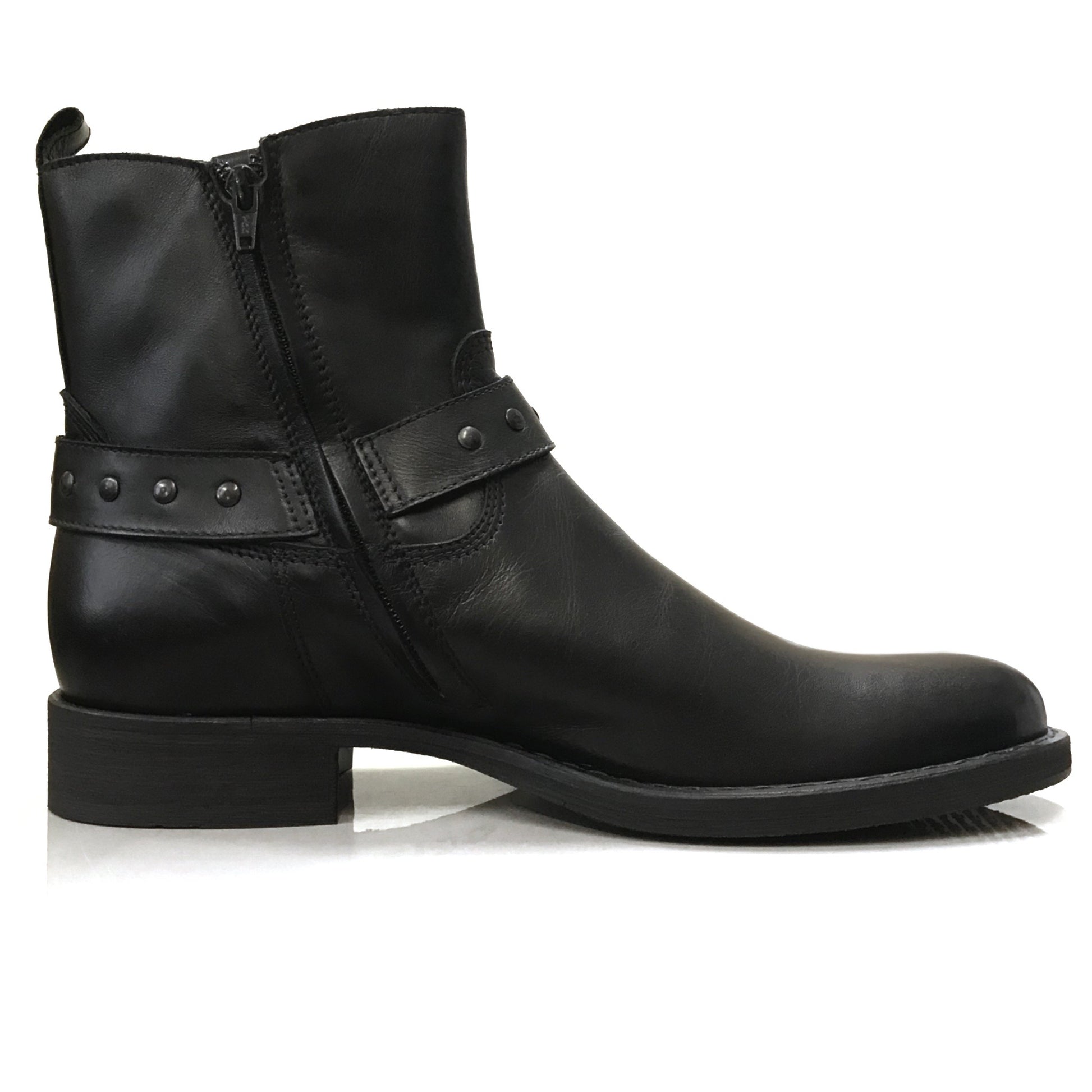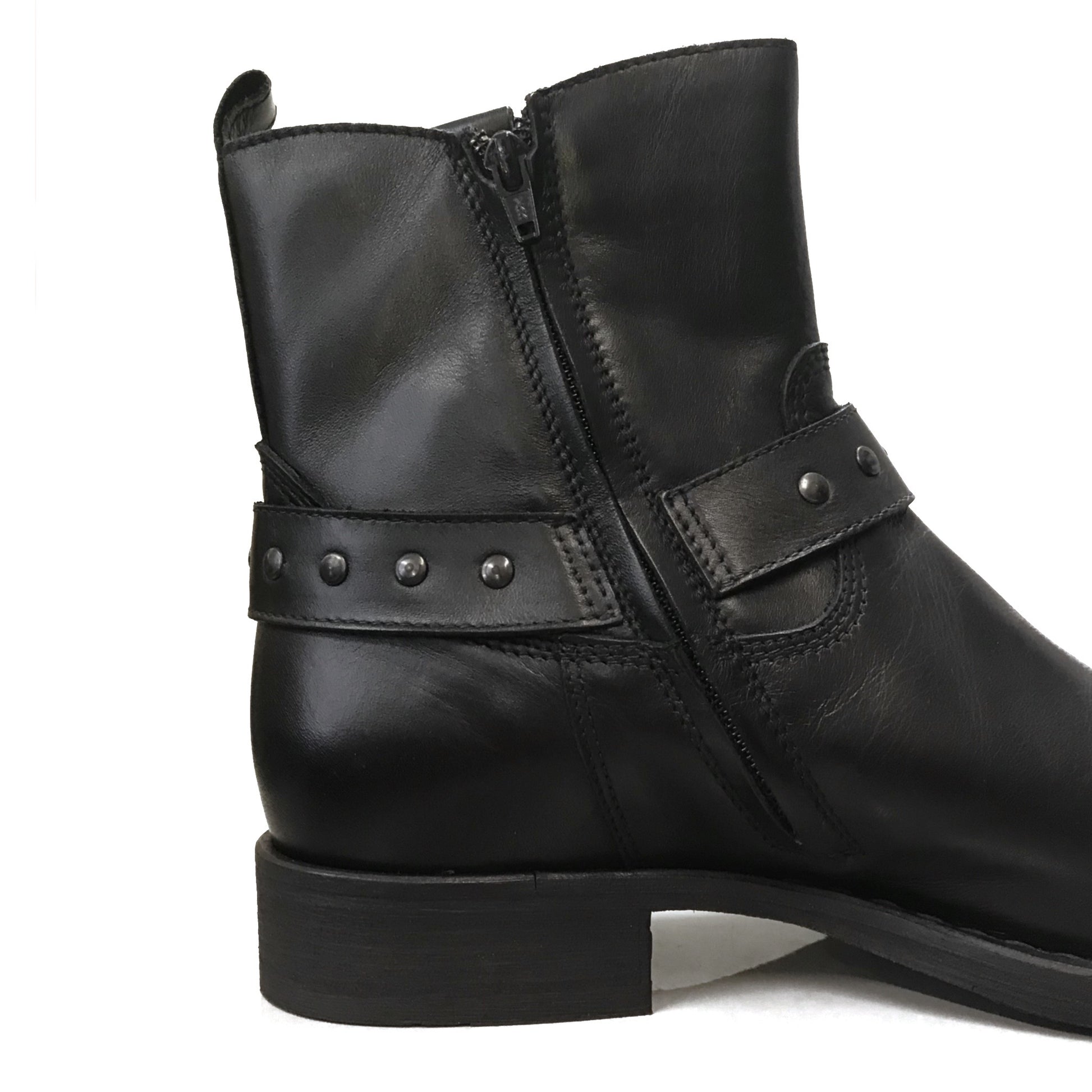 Rivestiti di stile con gli Stivaletti bikers uomo del brand NeroGiardini articolo 09045 realizzati in vefa pelle. Il colore nero si abbina facilmente a qualsiasi outfit, mentre le borchie e la fibbia ad anello aggiungono un tocco di eleganza e grinta. Realizzati in vera pelle di alta qualità, questi stivaletti offrono durata e comfort.