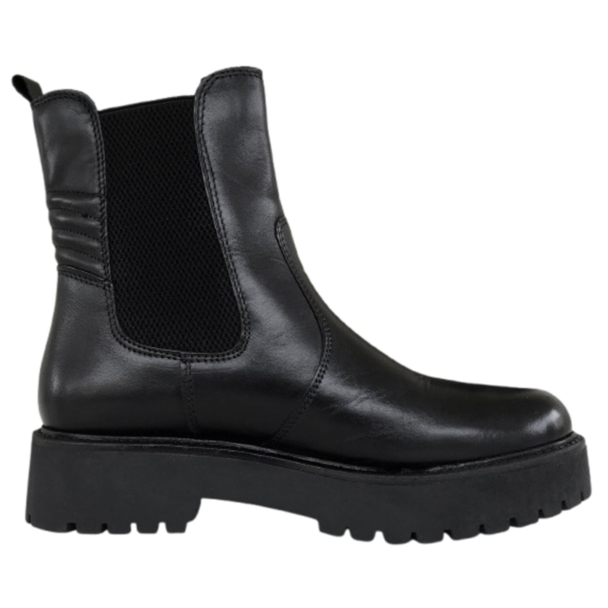 Stivaletti Chelsea Boot Donna Cinzia Soft in vera pelle nera – Questi stivaletti dallo stile intramontabile sono caratterizzati da un fondo platform che offre altezza e comfort, uniti alla praticità degli elastici laterali per una calzata slip-on facile e rapida . Il design Chelsea boot con elastici laterali con è perfetto per un look elegante e moderno, adatto a ogni occasione. Realizzati in vera pelle, sono resistenti, stilosi e versatili. Un must-have per ogni stagione, per chi cerca un mix di comfort e tendenze.