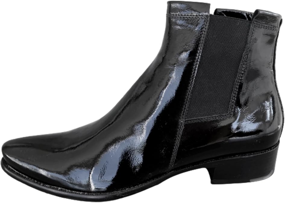 Stivaletti Neri Lucidi Donna NeroGiardini - Tacco Basso, Cerniera ed Elastico, Vernice Naplak