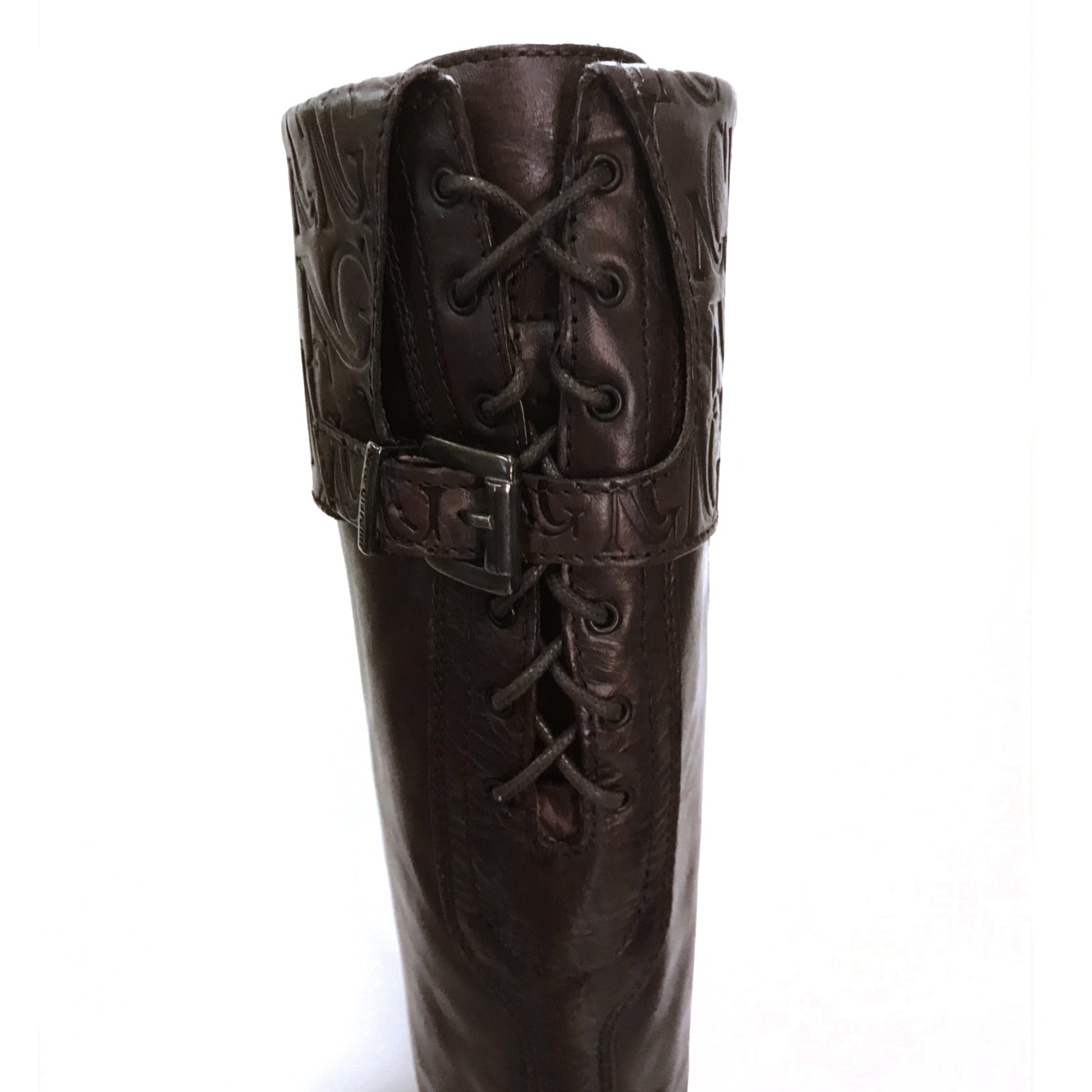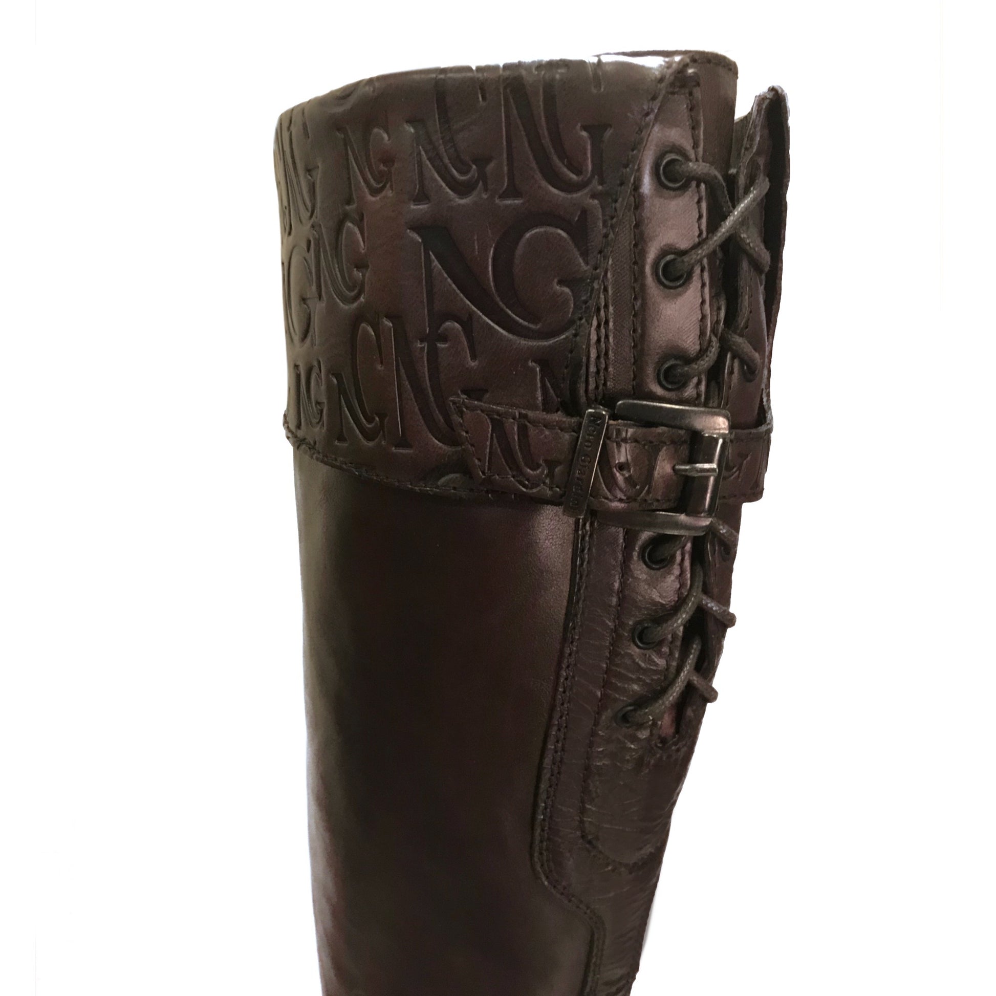 Stivali Cavallerizza NeroGiardini 00212 Vera Pelle, tacco basso 3 cm, Cerniera Zip Laterale, Lacci, risvolto monogram, Marrone Testa di Moro - Numero 38 (EU)