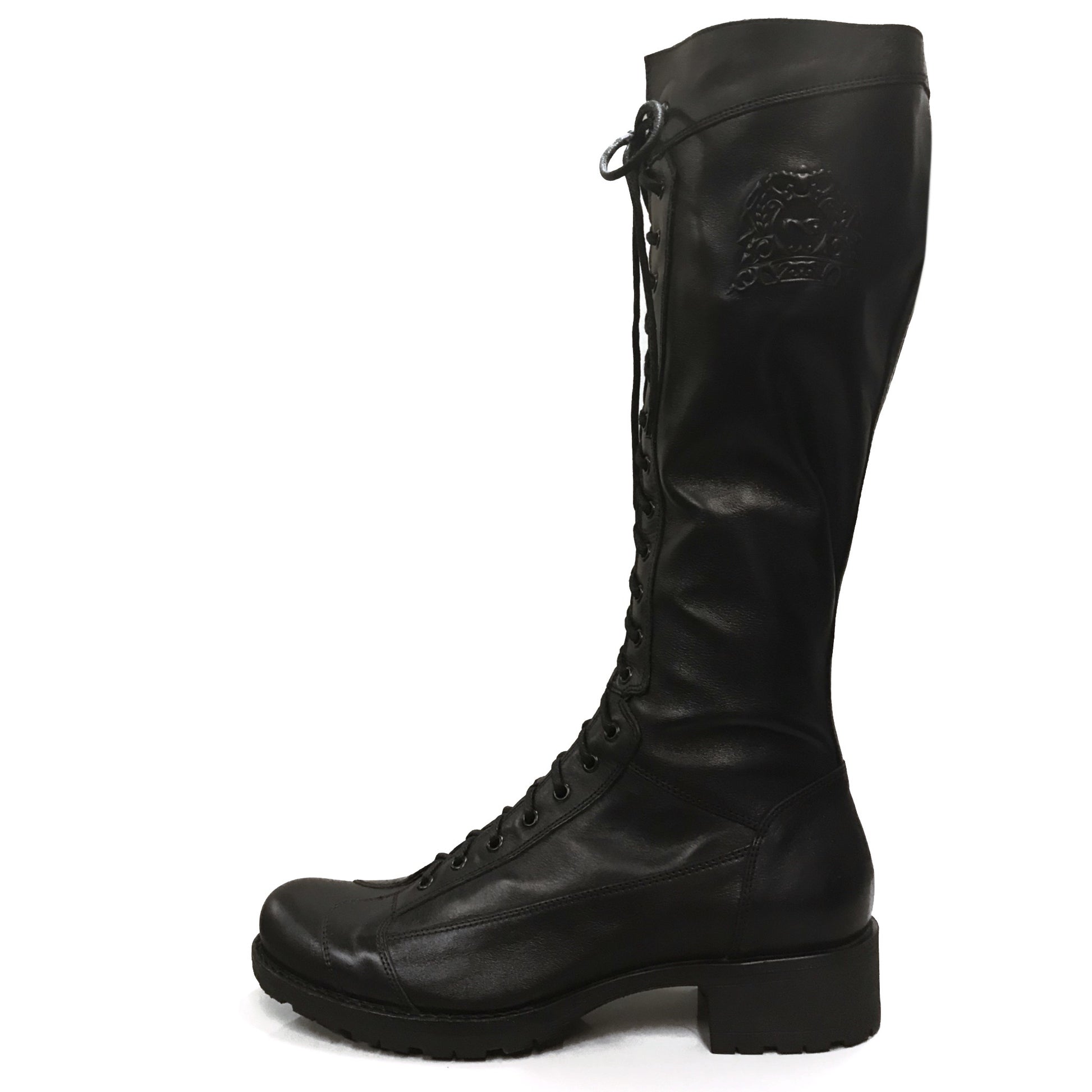 Stivali Anfibi Donna NeroGiardini P106501D Vera Pelle, Tacco basso 3 cm, Fondo gomma, Lacci, Cerniera Zip - Colore Nero