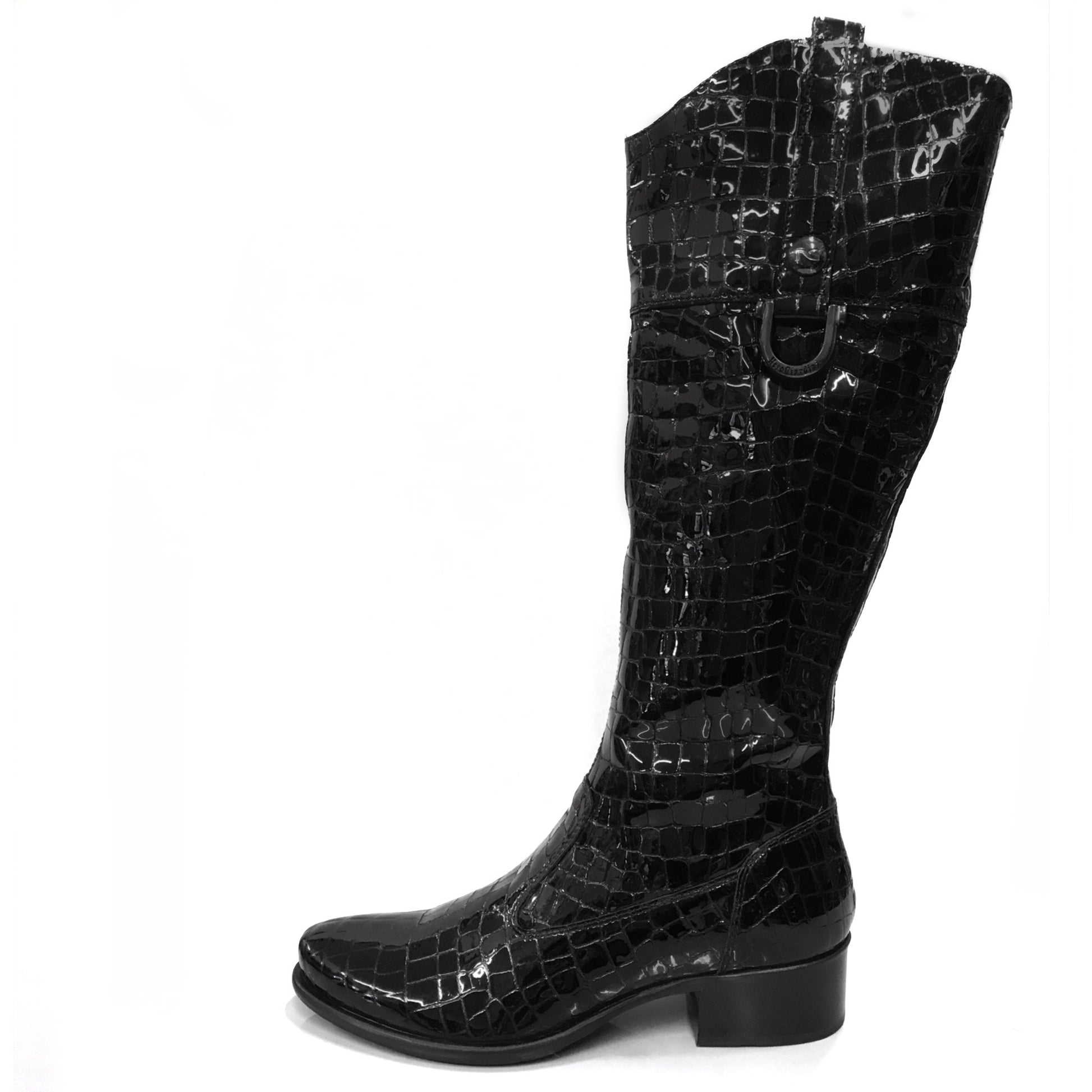 Stivali Cavallerizza Donna NeroGiardini A900186 Tacco a blocco basso, Vera pelle, Naplak in vernice, Stampa cocco, Zip - Colore Nero