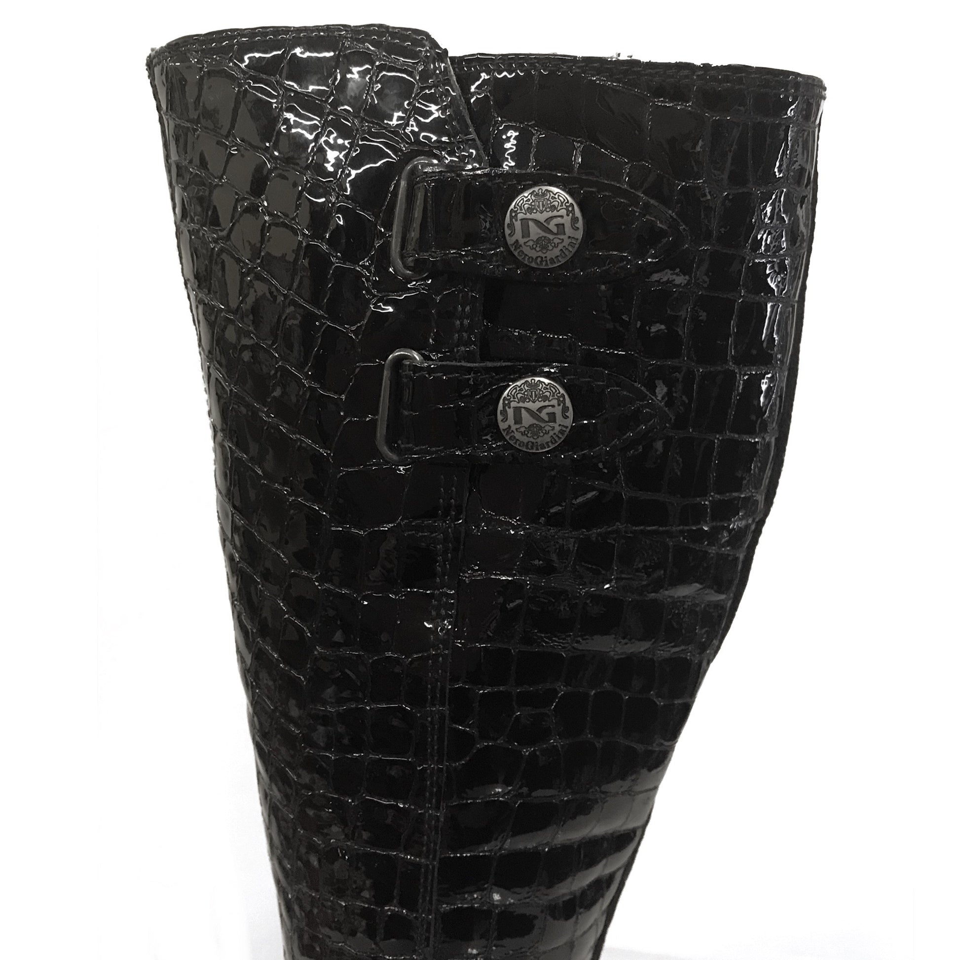 Stivali alti Donna NeroGiardini A900259 Vera Pelle, Naplak in Vernice Lucida, Stampa Cocco, Tacco a blocco, Zip - Colore Nero