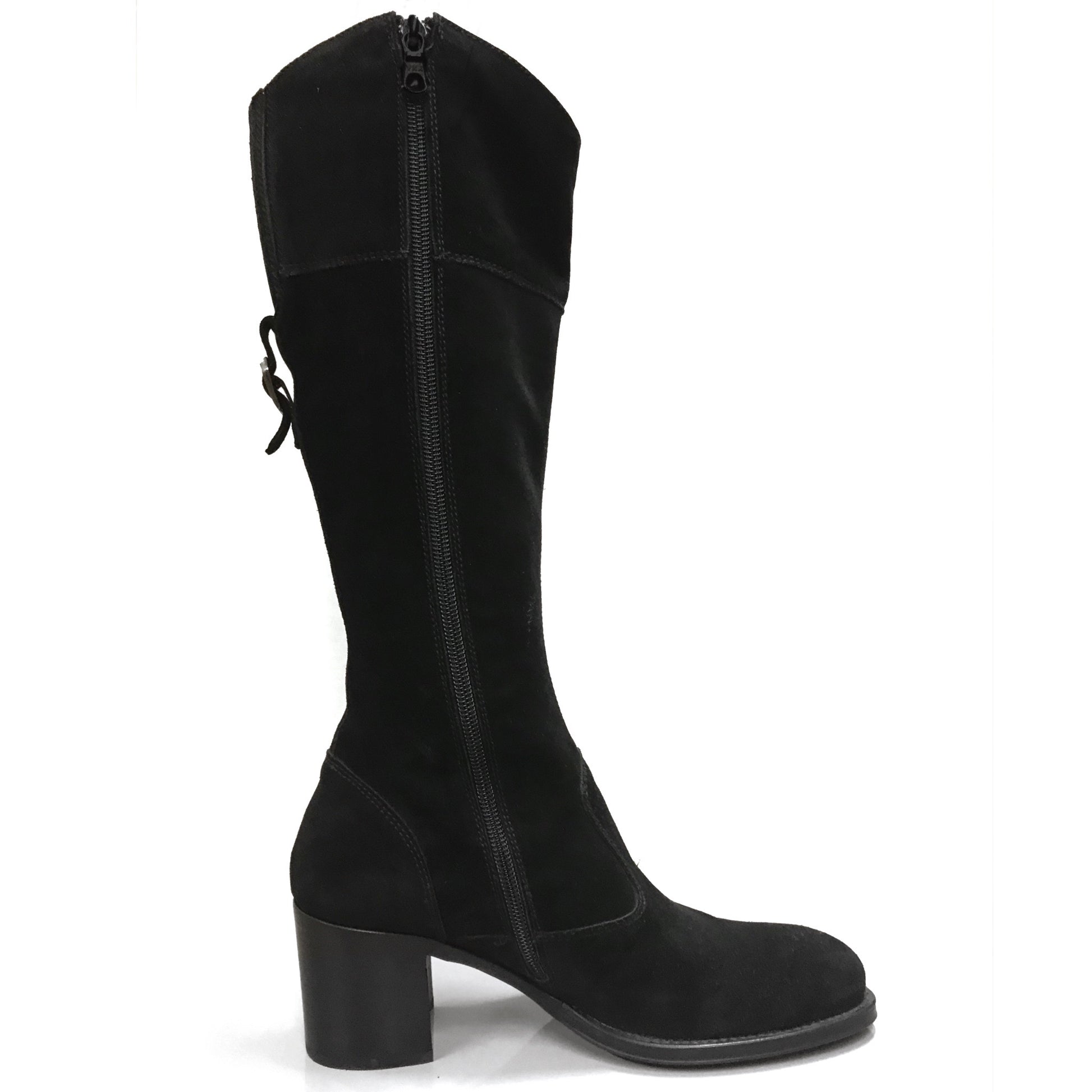 Stivali con tacco a blocco NeroGiardini A005431D Vera Pelle Scamosciata, Cerniera Zip - Colore Nero