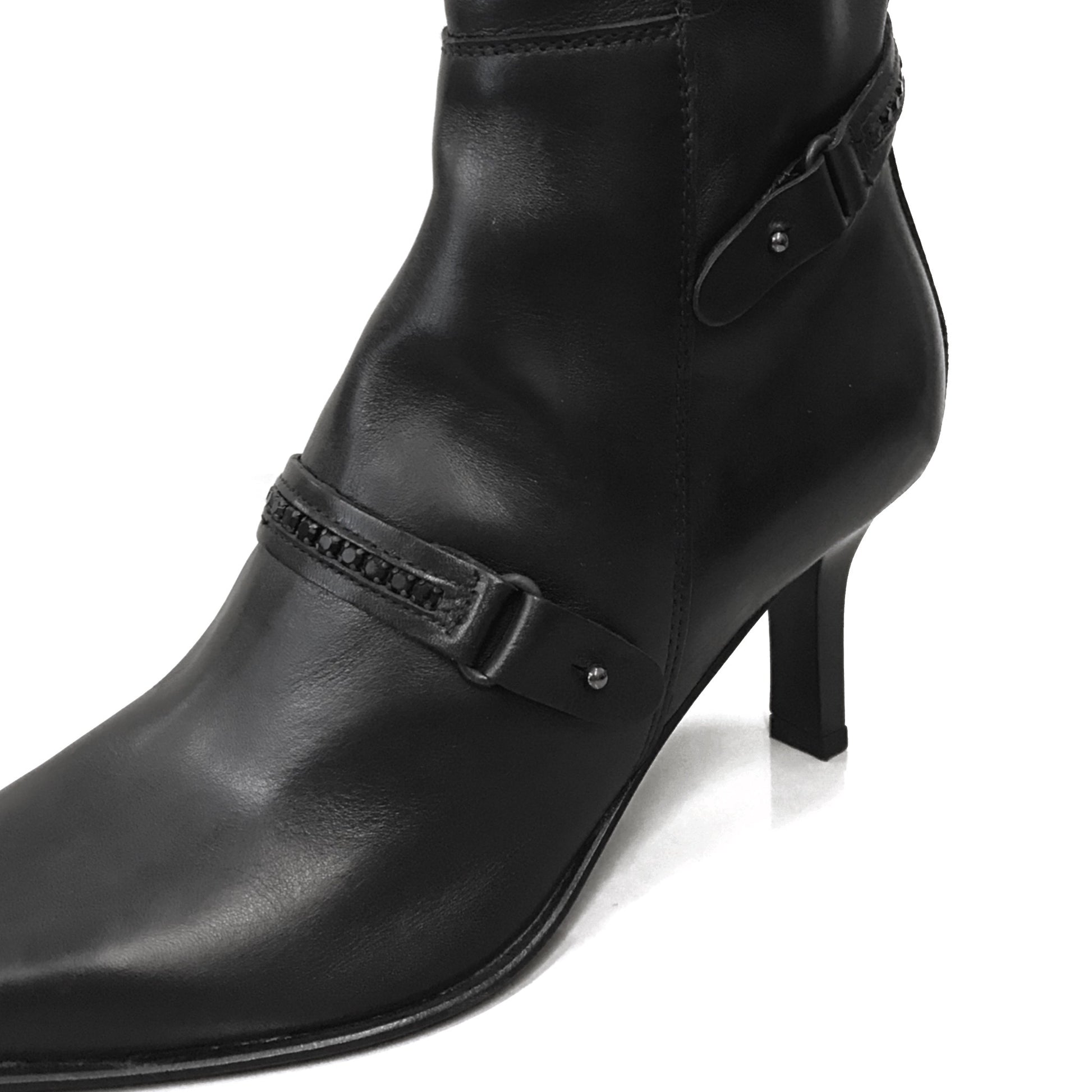 Stivali con tacco a spillo NeroGiardini 00543 Vera Pelle, Cerniera zip, Elastico, Strass - Colore Nero