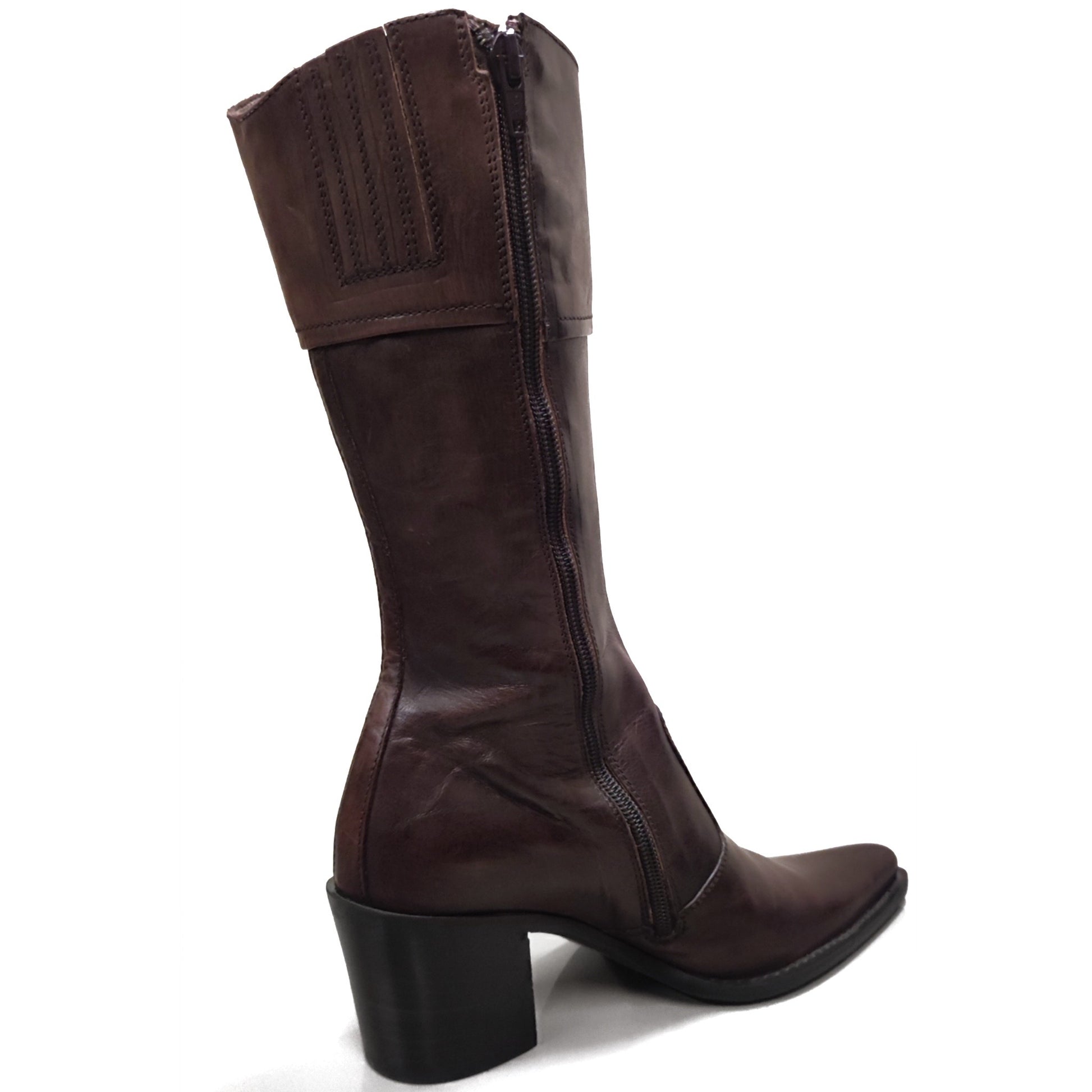Questi stivali texani da donna NeroGiardini 00972 sono realizzati in vera pelle, con un elegante colore marrone testa di moro. Dotati di zip e elastico per una calzata comoda, sono disponibili nella misura 38 (EU). Un must-have per un look country chic che unisce stile e comfort.